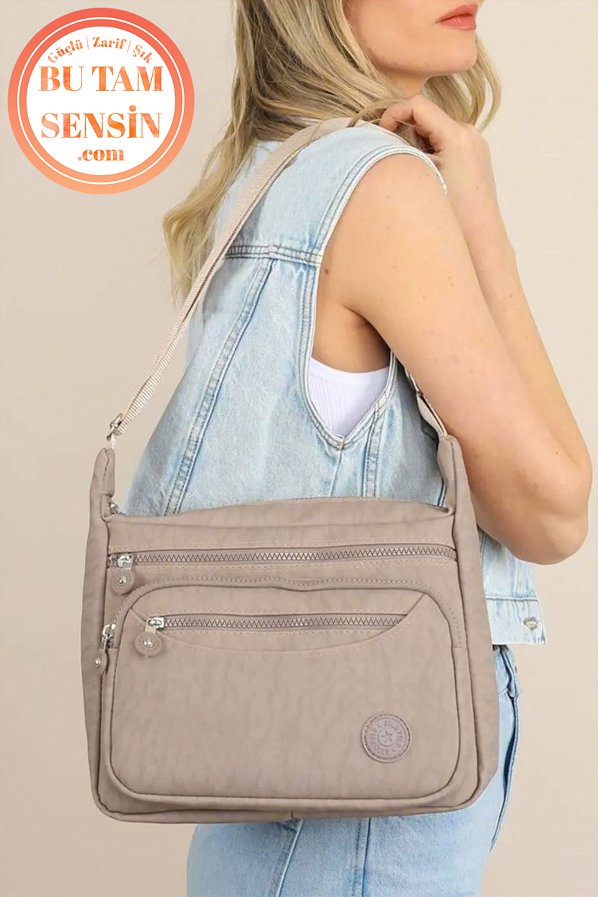 Bej Kadın Su Geçirmez Krinkıl Kumaşlı Fermuarlı 5 Bölmeli Orta Boy Postacı Omuz Çantası Bej Kadın Su Geçirmez Krinkıl Kumaşlı Fermuarlı 5 Bölmeli Orta Boy Postacı Omuz Çantası KÇP0110 تک سایز