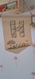 Çocuk Odası Dekor, Duvar Süsü, Ahşap Bebek Odası Dekor, Canvas Flama, Safari Ve Hayvanlı H Harfi Çocuk Odası Dekor, Duvar Süsü, Ahşap Bebek Odası Dekor, Canvas Flama, Safari Ve Hayvanlı H Harfi flama13 70 x 100