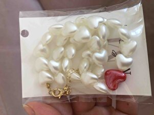 Kadın Murano Kalp Boncuk İnci Kolye Kadın Murano Kalp Boncuk İnci Kolye K137 40 cm