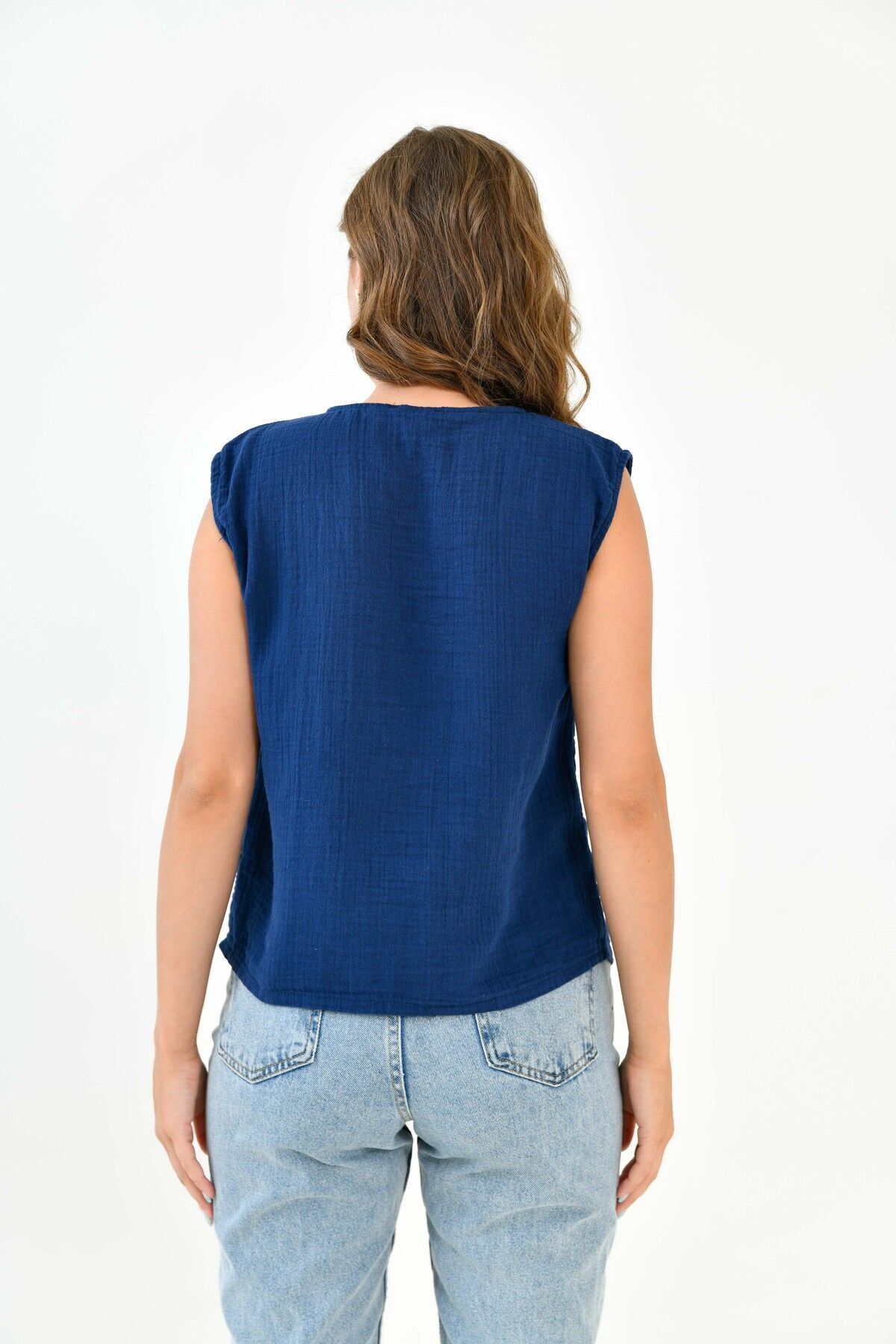 Kadın %100 Pamuk Cepken Önden Düğmeli Müslin Yelek Bluz Kadın %100 Pamuk Cepken Önden Düğmeli Müslin Yelek Bluz 009ÖNDENDÜĞMELİYELEK XL