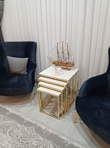Duru 4'lü Kare Zigon Sehpa Seti Gold Ayak, Krem Mdf Duru 4'lü Kare Zigon Sehpa Seti Gold Ayak, Krem Mdf duru444 تک سایز
