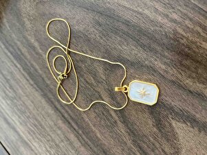 Altın Kaplama Mineli Plaka Kuzey Yıldızı ve Çelik İnce Zincirli Çelik Kadın Altın Kaplama Mineli Plaka Kuzey Yıldızı ve Çelik İnce Zincirli Çelik Kadın KY103 60 cm