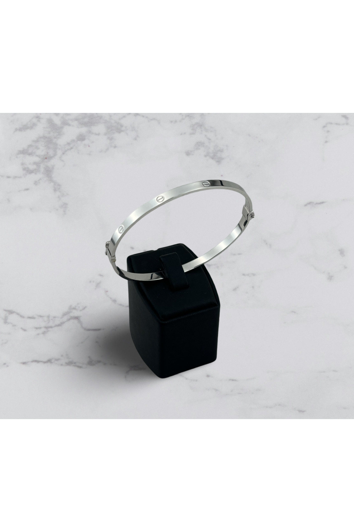 14 Ayar Beyaz Altın Vidalı 4 Milim Kelepçe 14 Ayar Beyaz Altın Vidalı 4 Milim Kelepçe BYZCRT تک سایز