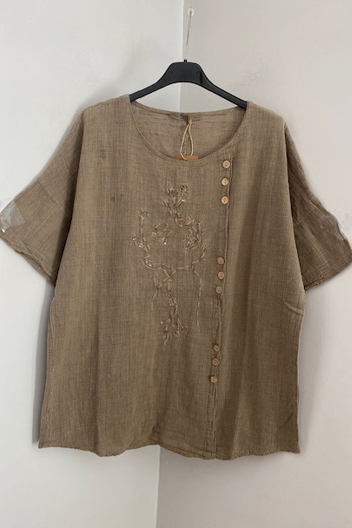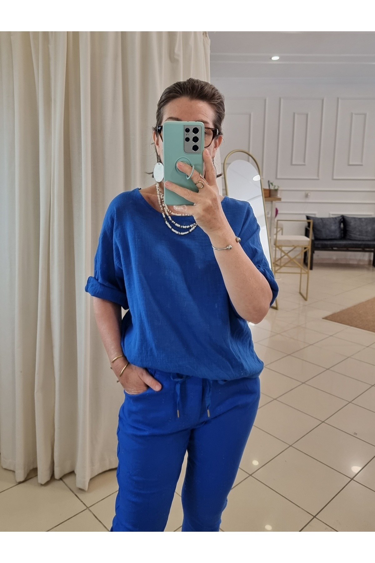 Kadın İtalyan Saks Mavi Kalp Baskılı Katlanabilen Yetim Kollu Eteği Bağlama Detaylı Salaş Keten Bluz Kadın İtalyan Saks Mavi Kalp Baskılı Katlanabilen Yetim Kollu Eteği Bağlama Detaylı Salaş Keten Bluz 044367-ITALYAN Standart