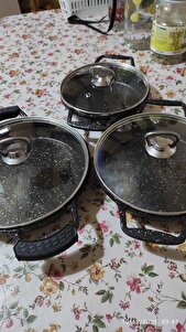 6'lı Granit Tava Seti Cam Kapaklı Döküm Siyah 18-20-22 Cm 6'lı Granit Tava Seti Cam Kapaklı Döküm Siyah 18-20-22 Cm ESITAVA1 تک سایز