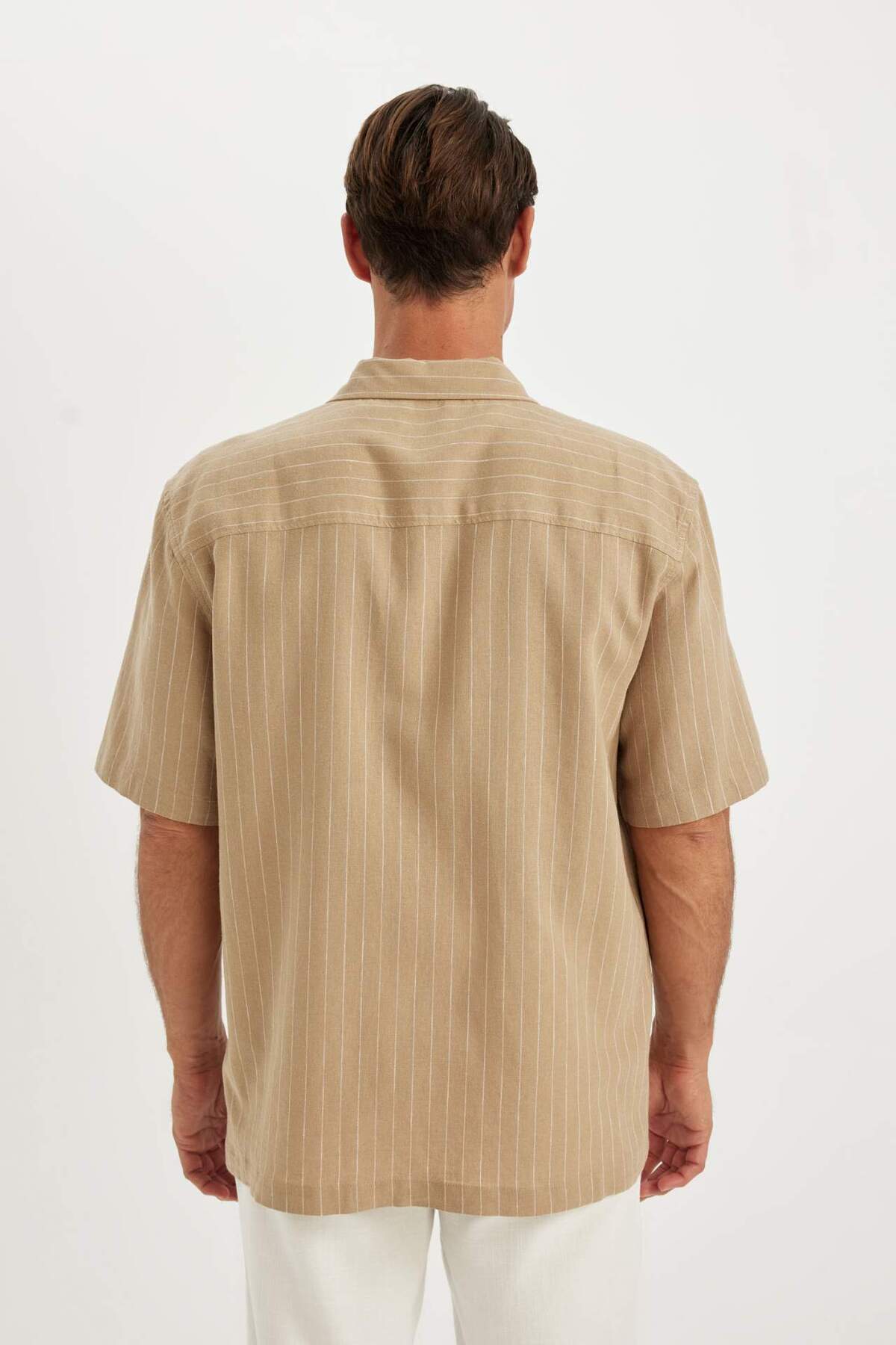 Relax Fit Polo Yaka Çizgili Yazlık Keten Kısa Kollu Gömlek C1111AX24SM Relax Fit Polo Yaka Çizgili Yazlık Keten Kısa Kollu Gömlek C1111AX24SM 2XL