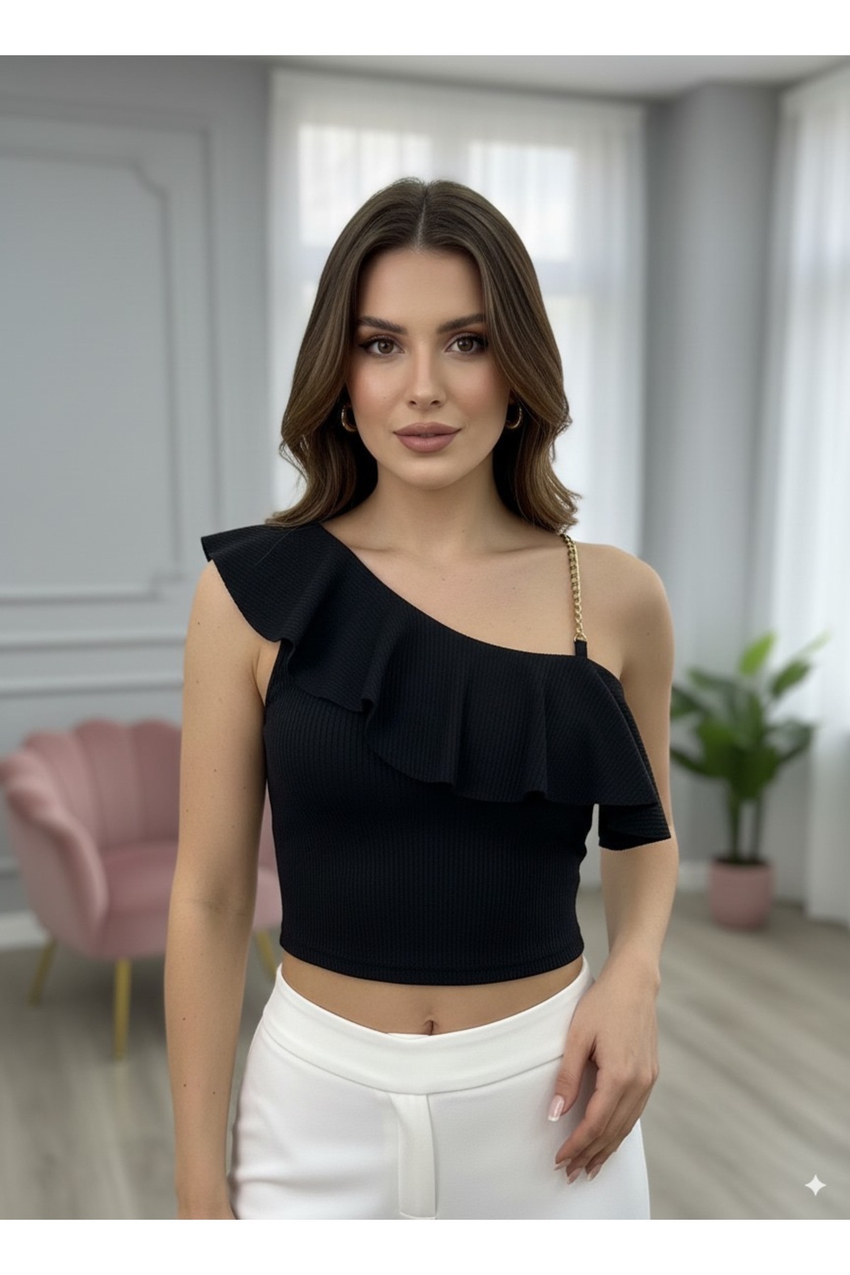 Kadın Siyah Fırfırlı Tek Omuz Bluz ALC-X12461 Kadın Siyah Fırfırlı Tek Omuz Bluz ALC-X12461 XL