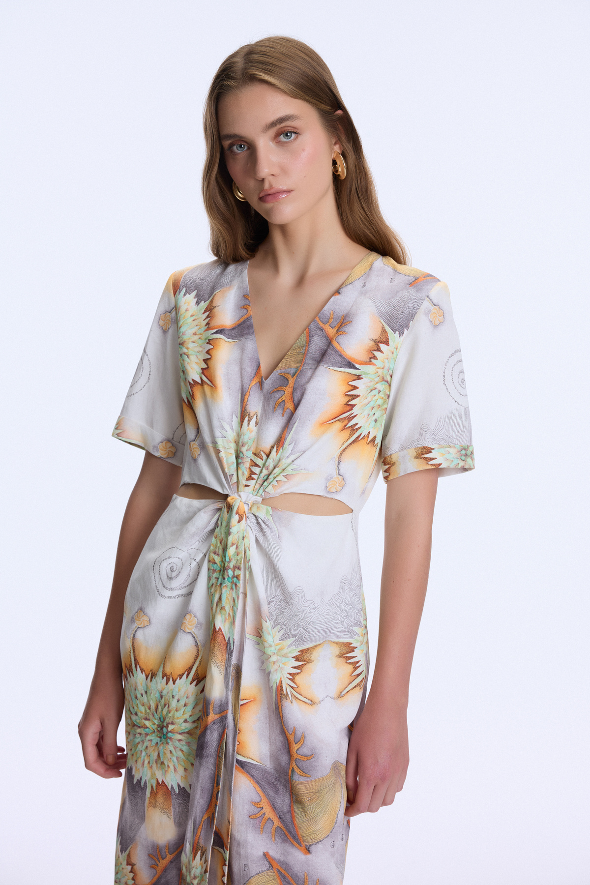 Meydan Okuyanlar V Yaka Desenli Keten Elbise Meydan Okuyanlar V Yaka Desenli Keten Elbise 124R0096000 XL