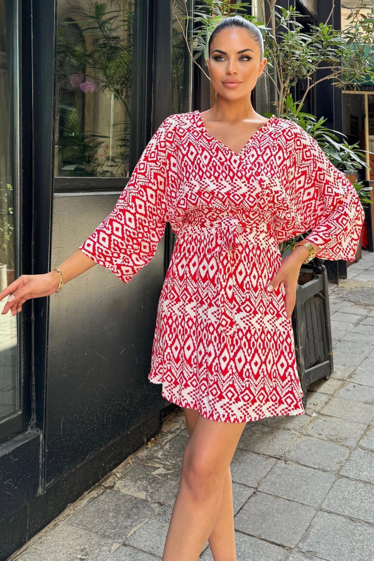 Kadın Mavi Etnik Desenli Viskon, Yarasa Kol, Kruvaze Mini Kimono - Kloş Kısa Elbise Kadın Mavi Etnik Desenli Viskon, Yarasa Kol, Kruvaze Mini Kimono - Kloş Kısa Elbise NY3155 42