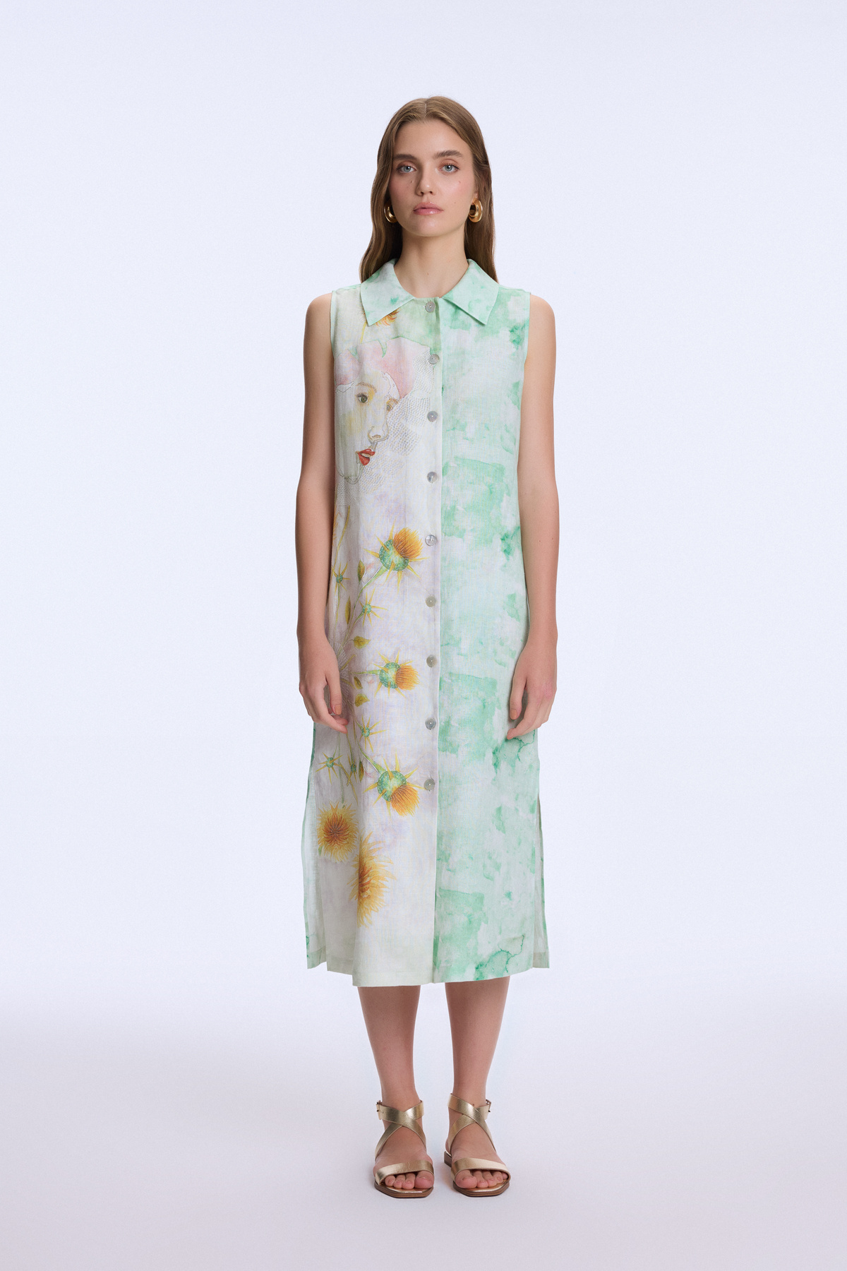 Sana Dair Desenli Keten Gömlek Elbise Sana Dair Desenli Keten Gömlek Elbise 124R0108000 XL