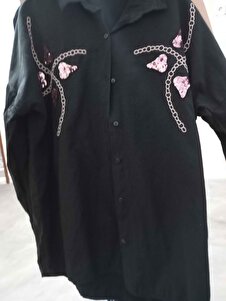 Kadın Kalp Siyah Palmiye Pul Detaylı Dokuma Gömlek GML-19001225 Kadın Kalp Siyah Palmiye Pul Detaylı Dokuma Gömlek GML-19001225 L