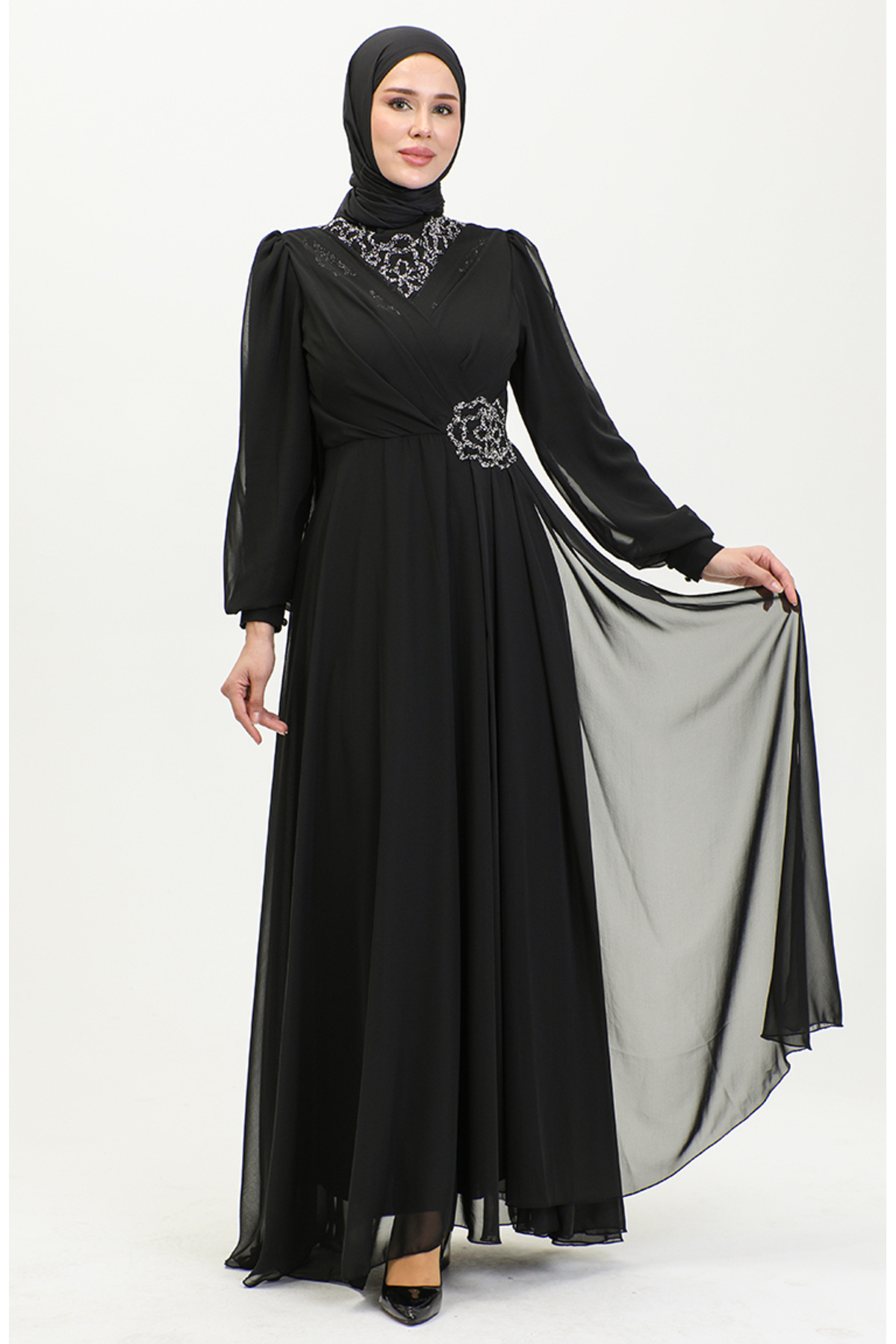 Taş Baskılı Abiye Elbise 52882-02 Siyah Taş Baskılı Abiye Elbise 52882-02 Siyah FYCL52882-02 52