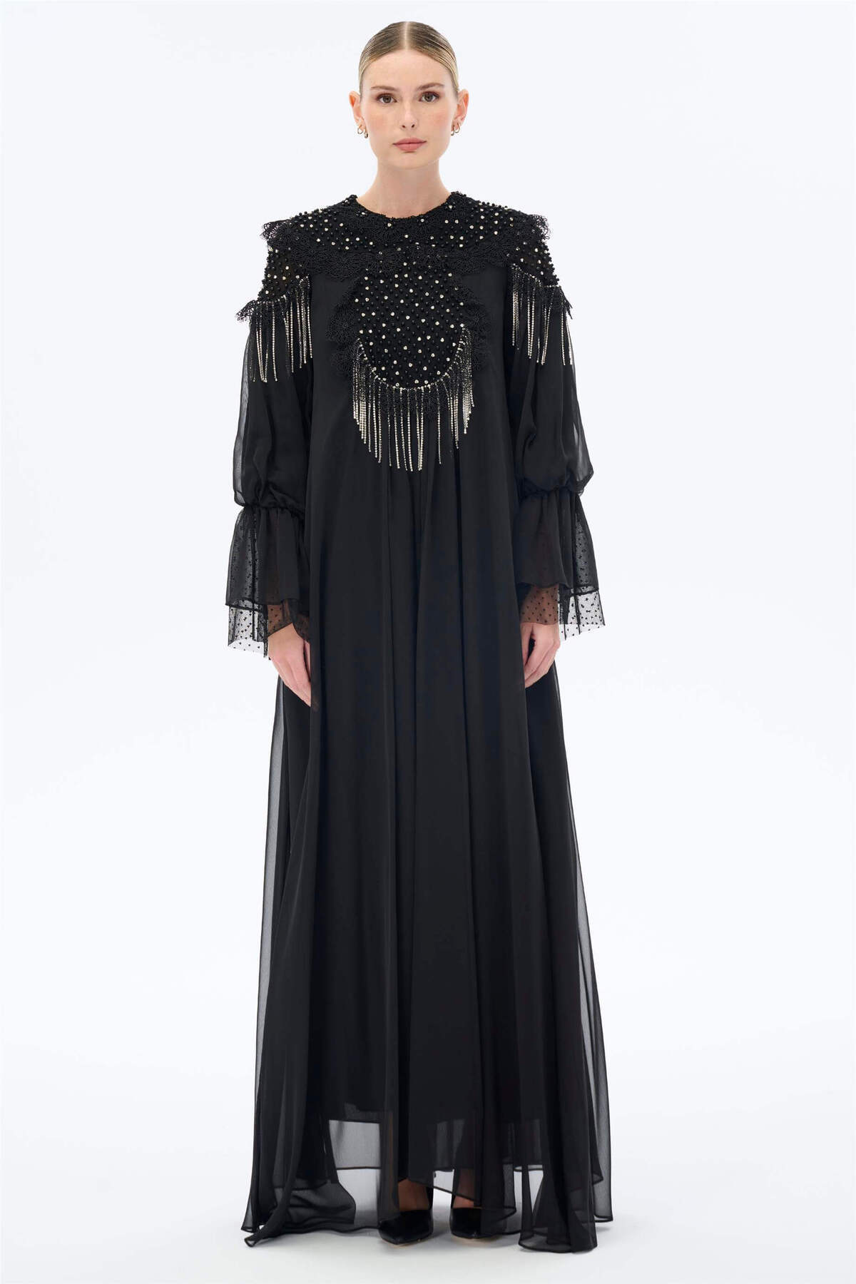TAŞ VE DANTEL İŞLEMELİ UZUN ELBİSE Beyaz TAŞ VE DANTEL İŞLEMELİ UZUN ELBİSE Beyaz MH06.297 L/XL