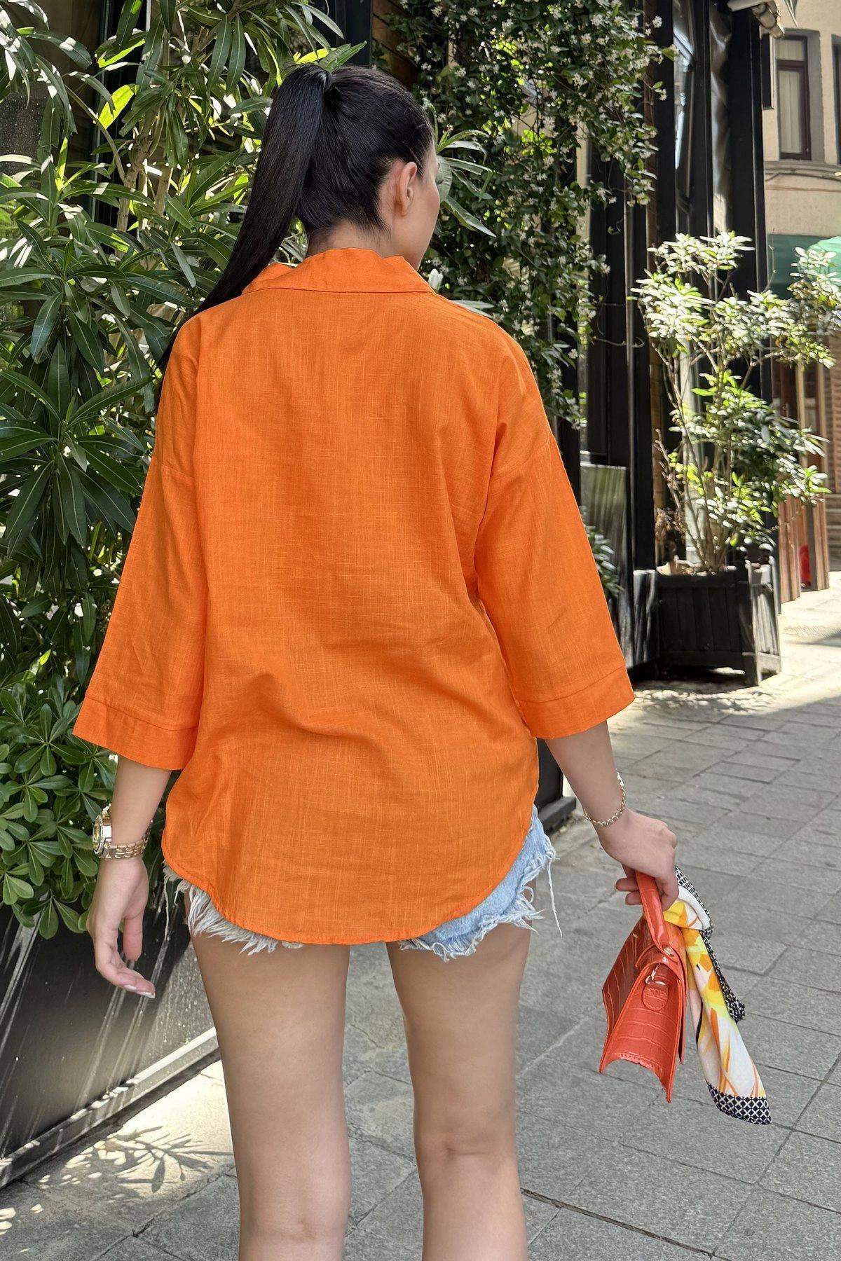 Kadın Turuncu Truvakar Kol, Oval Kesim, Terletmez, Flamlı Keten Salaş Gömlek Kadın Turuncu Truvakar Kol, Oval Kesim, Terletmez, Flamlı Keten Salaş Gömlek NY3619 42