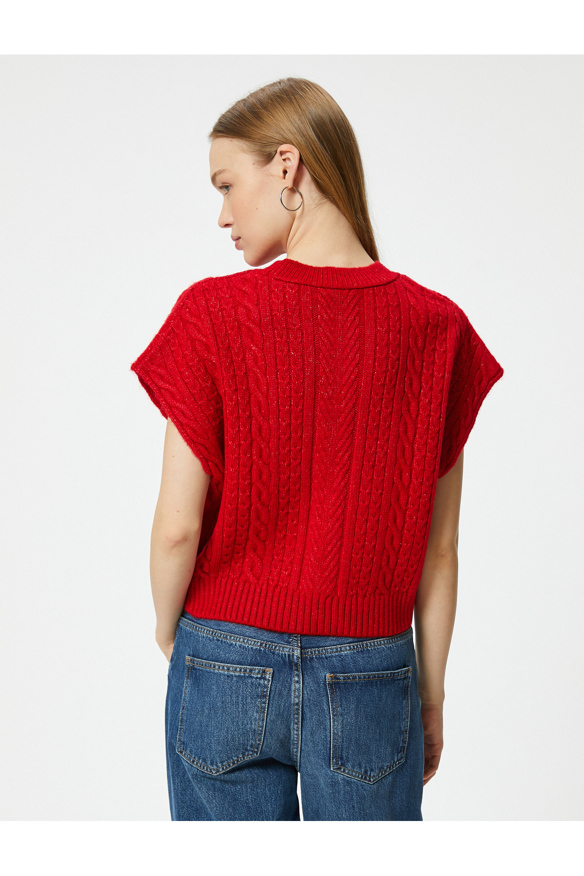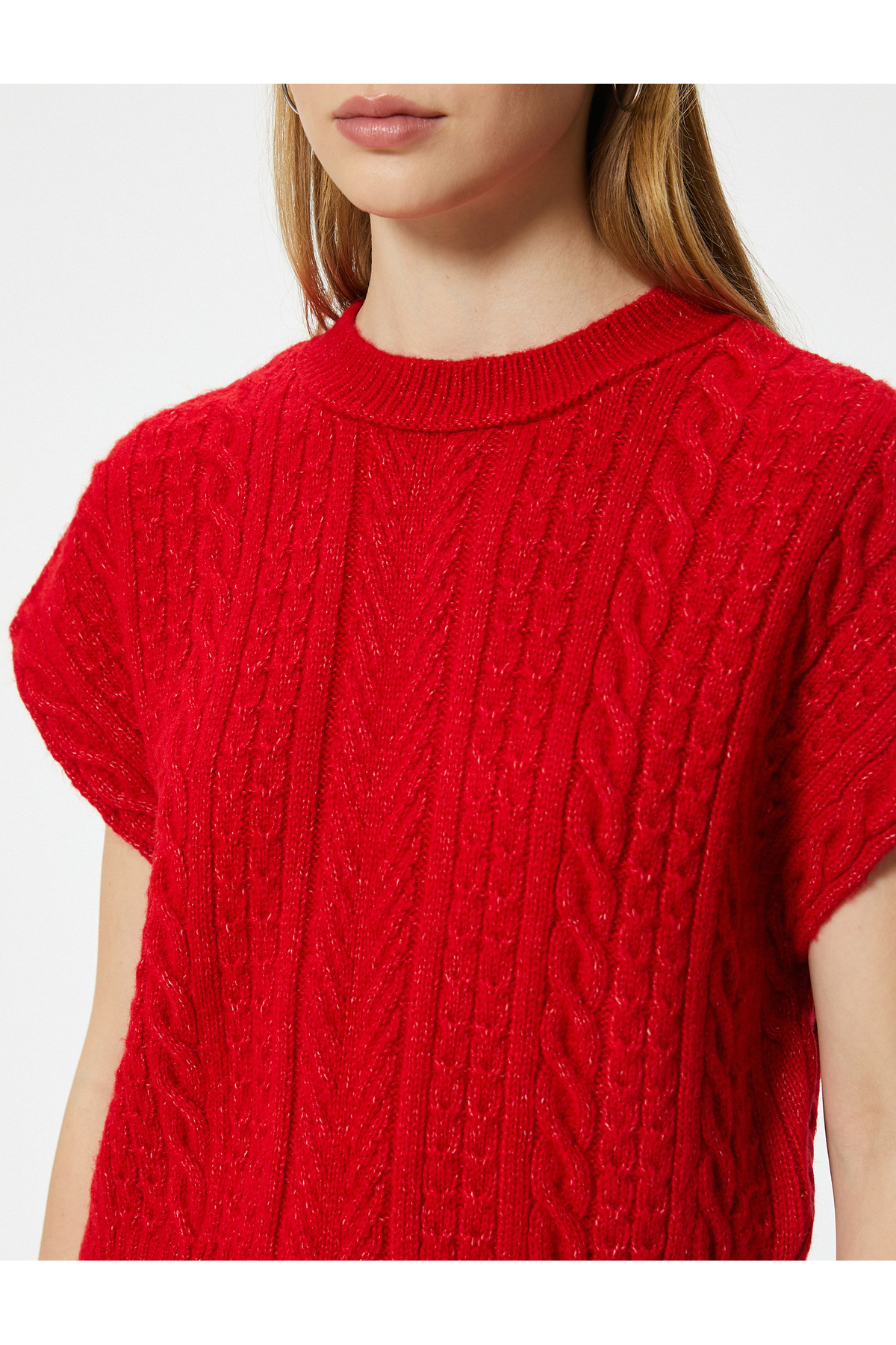 Örgü Dokulu Süveter Bisiklet Yaka Yarasa Kol Örgü Dokulu Süveter Bisiklet Yaka Yarasa Kol 5WAL20006IT L