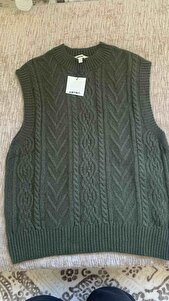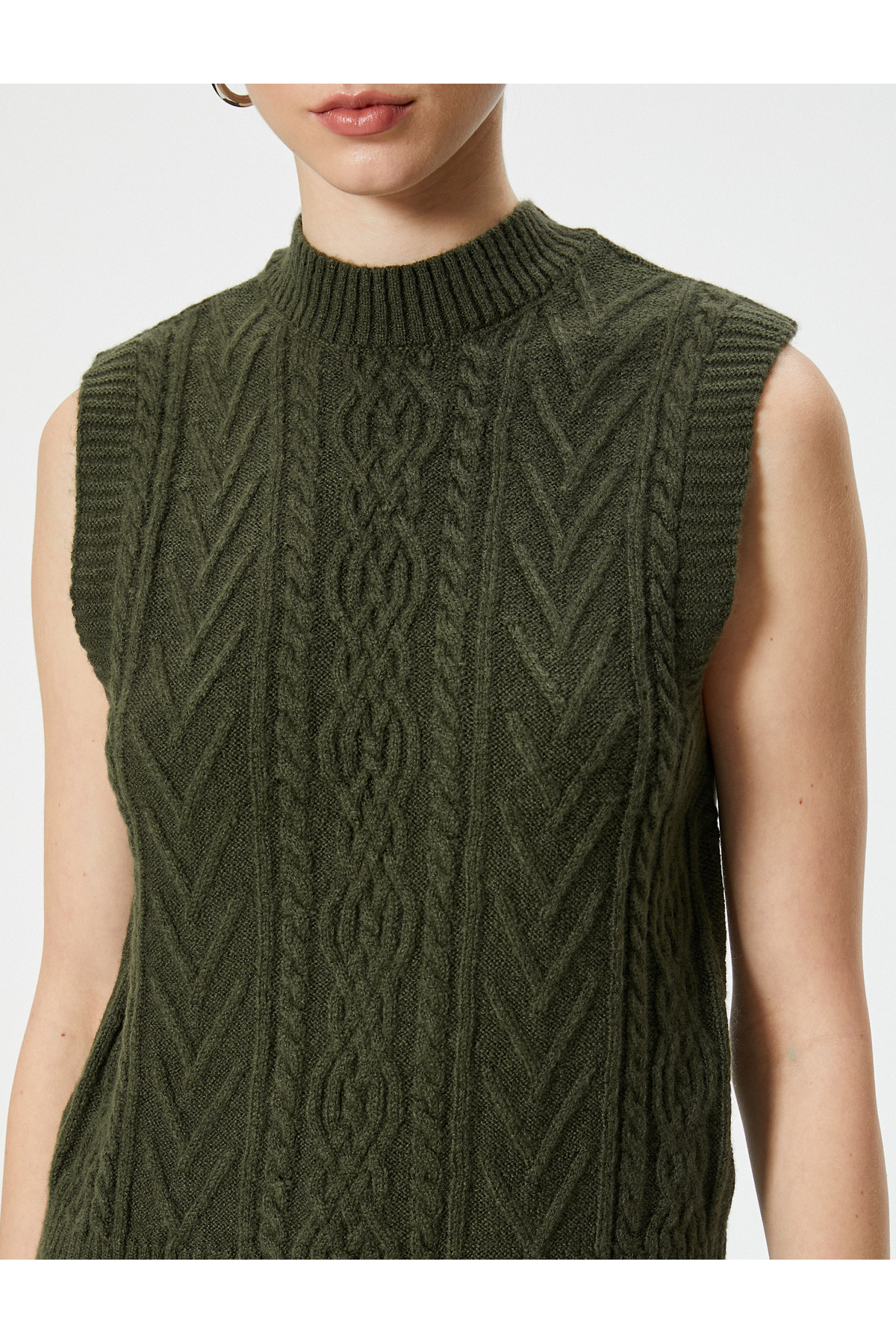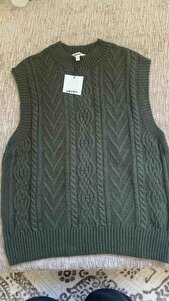 Dokulu Bisiklet Yaka Kolsuz Saç Örgü Süveter Dokulu Bisiklet Yaka Kolsuz Saç Örgü Süveter 5WAK20008HT XL