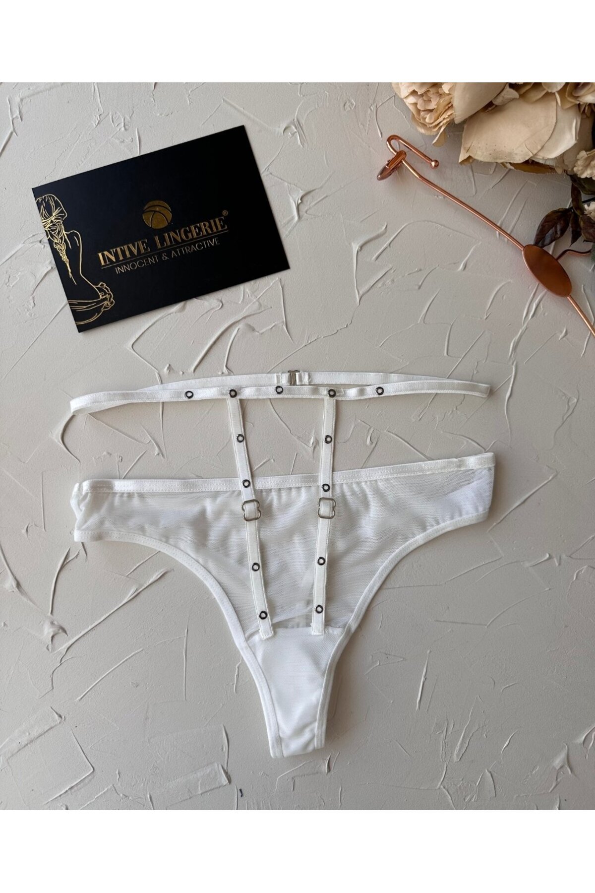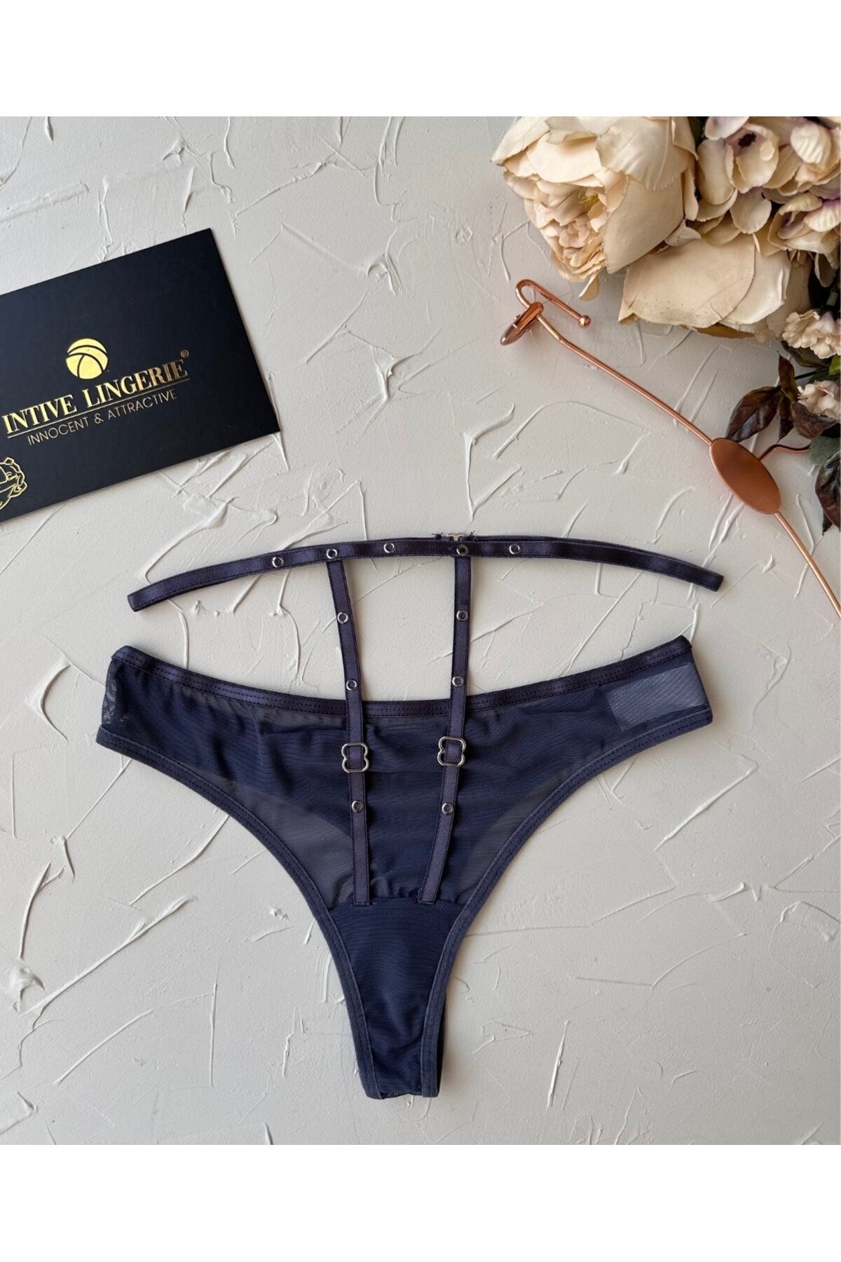 Kadın Yüksel Bel Şerit Detaylı Ağı Pamuklu Halka Detaylı Tül Tanga Kadın Yüksel Bel Şerit Detaylı Ağı Pamuklu Halka Detaylı Tül Tanga INTVFK2459 L/XL