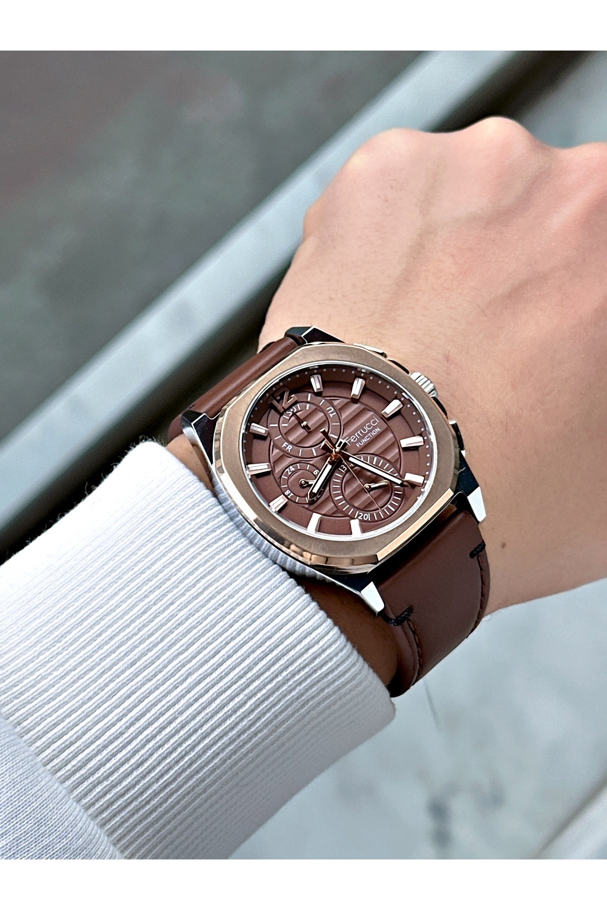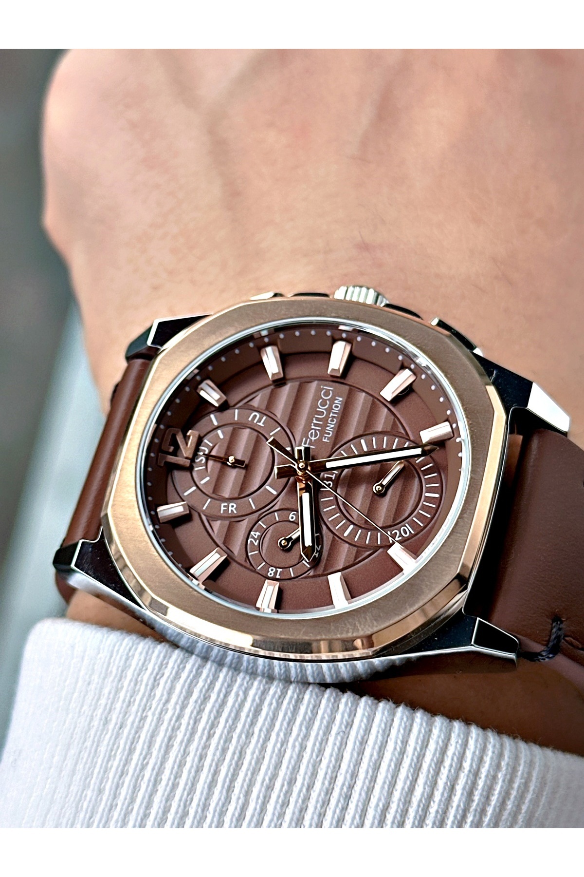 Fonksiyonları Aktif Kahverengi Renk 3 Atm Su Geçirmez Deri Kordon Erkek Kol Saati Fonksiyonları Aktif Kahverengi Renk 3 Atm Su Geçirmez Deri Kordon Erkek Kol Saati FRC1057MR تک سایز