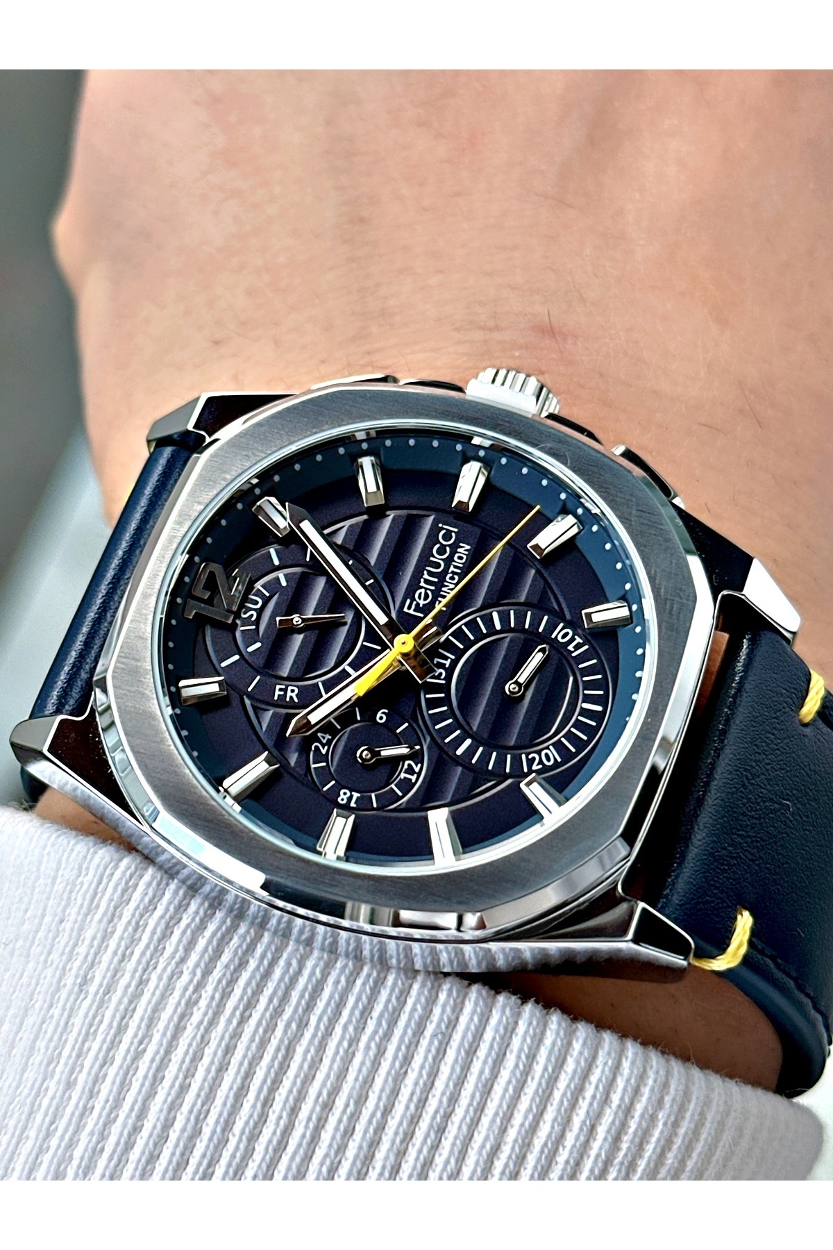 Fonksiyonları Aktif Lacivert Renk 3 Atm Su Geçirmez Deri Kordon Erkek Kol Saati Fonksiyonları Aktif Lacivert Renk 3 Atm Su Geçirmez Deri Kordon Erkek Kol Saati FRC1057MR تک سایز