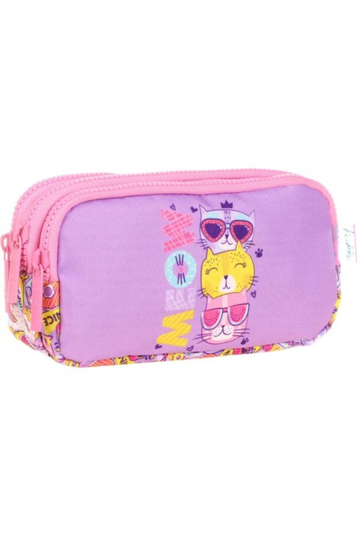 Üç Bölmeli Pembe Sevimli Kedi Kız Çocuk Kalem Çantası Üç Bölmeli Pembe Sevimli Kedi Kız Çocuk Kalem Çantası PZM1878 تک سایز