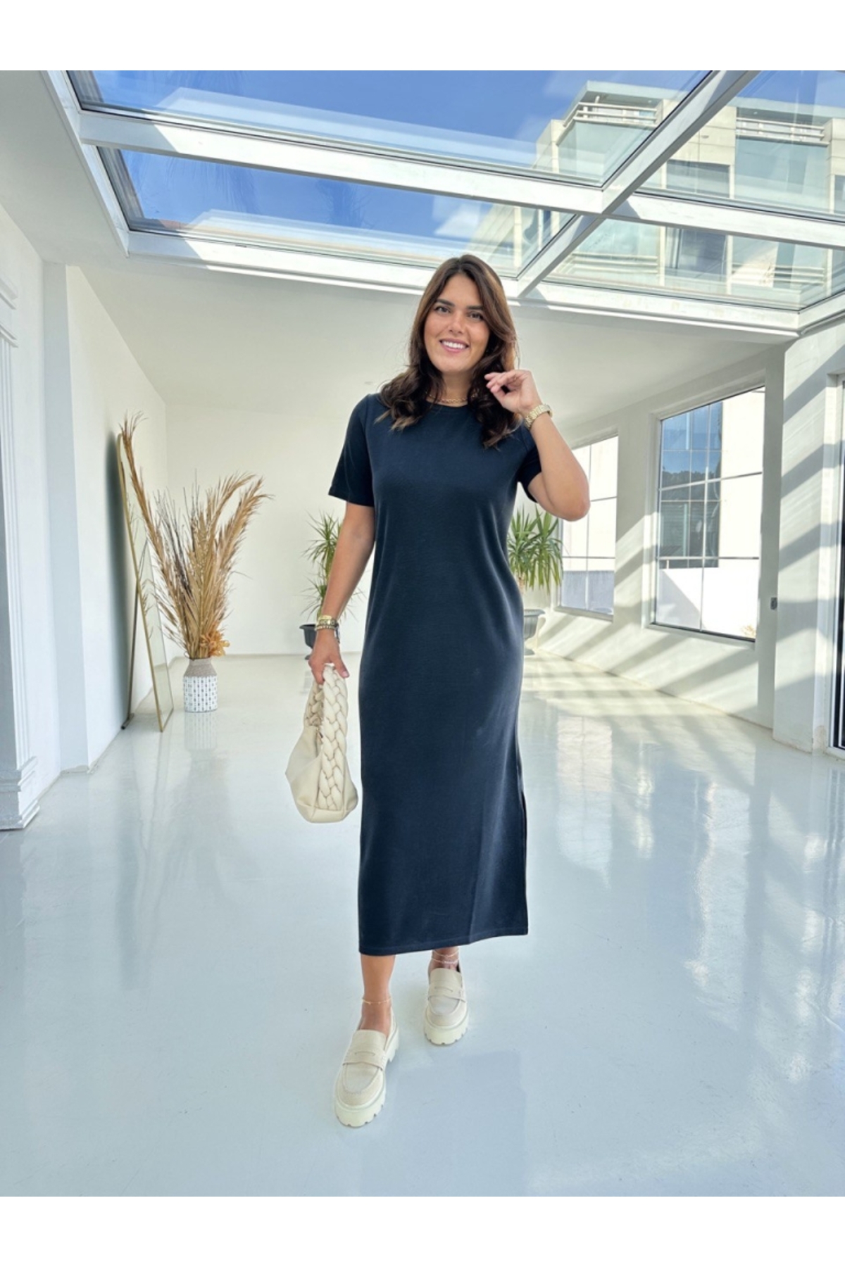 Siyah Yırtmaçlı Salaş Modal Elbise Siyah Yırtmaçlı Salaş Modal Elbise 0116 L