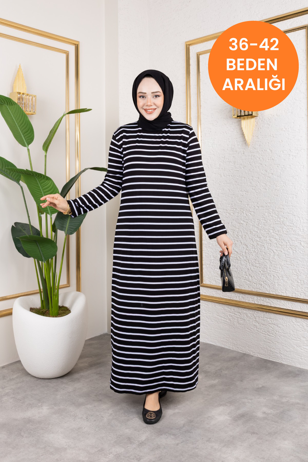 Harika Penye Çizgili Giy Çık İşlevsel Elbise Hat Belli Etmeyen Elbisemiz Harika Penye Çizgili Giy Çık İşlevsel Elbise Hat Belli Etmeyen Elbisemiz T1217 تک سایز