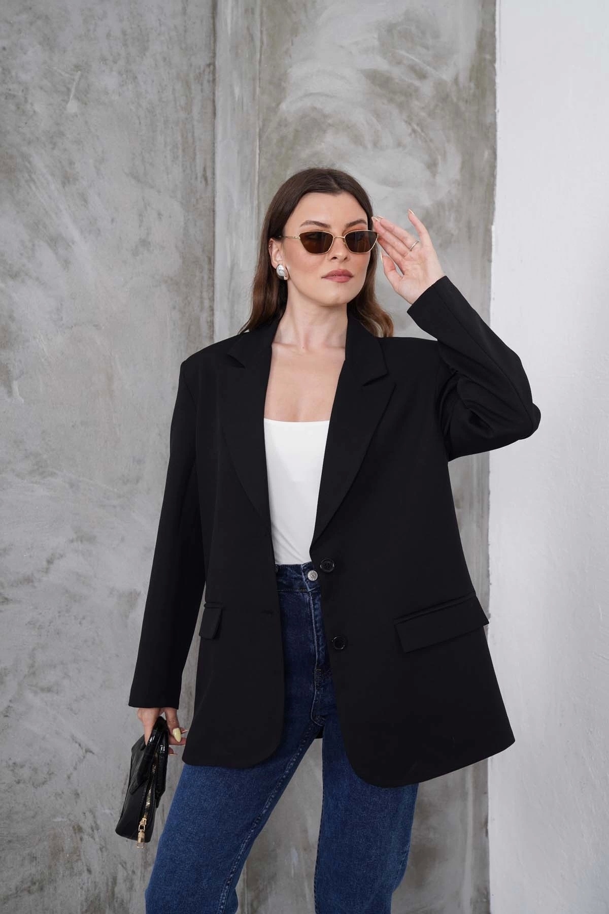 Kadın Blazer Ceket Çizgili Astar Detaylı Kadın Blazer Ceket Çizgili Astar Detaylı 98 XL-XXL