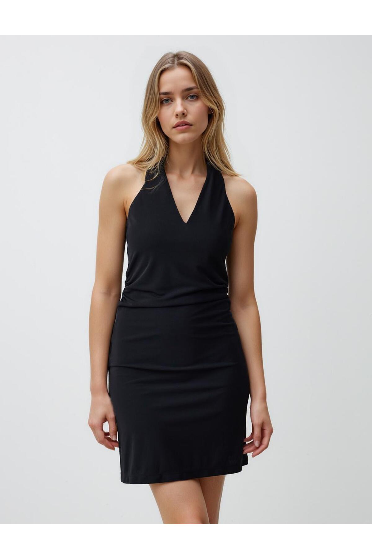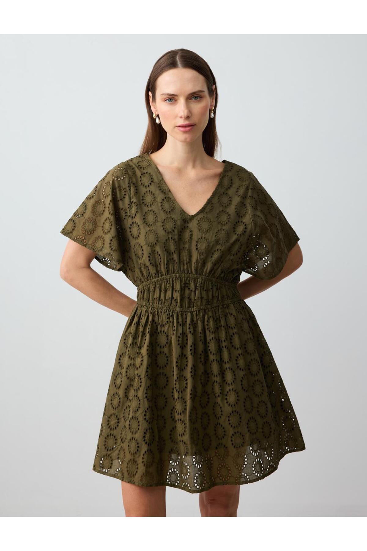 Kadın, Mavi Renkli Ön Kısmı Çiçek Detaylı Elbise. Kadın, Mavi Renkli Ön Kısmı Çiçek Detaylı Elbise. CLİCHE0752 38