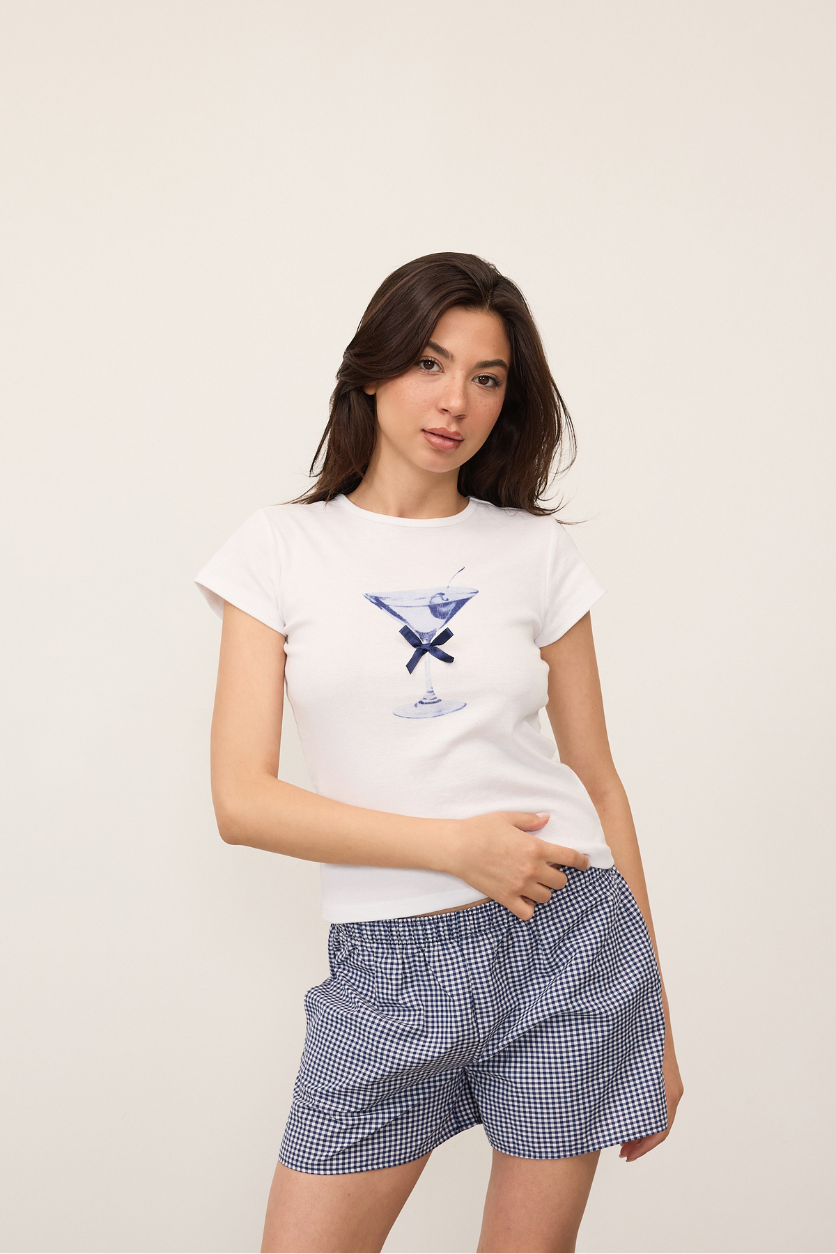 Kokteyl Bardak Desenli T-Shirt P1576-U10 Kokteyl Bardak Desenli T-Shirt P1576-U10 ADX-00033061 L