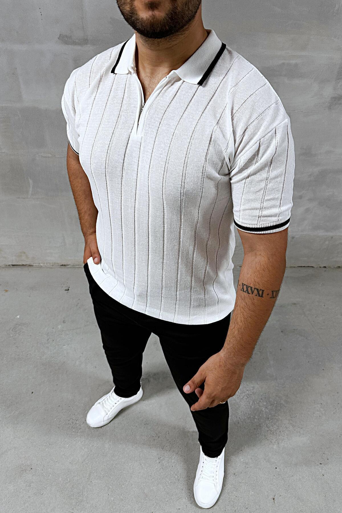 Beyaz Fermuarlı Polo Yaka Örme Triko Tshirt Beyaz Fermuarlı Polo Yaka Örme Triko Tshirt 156 XL