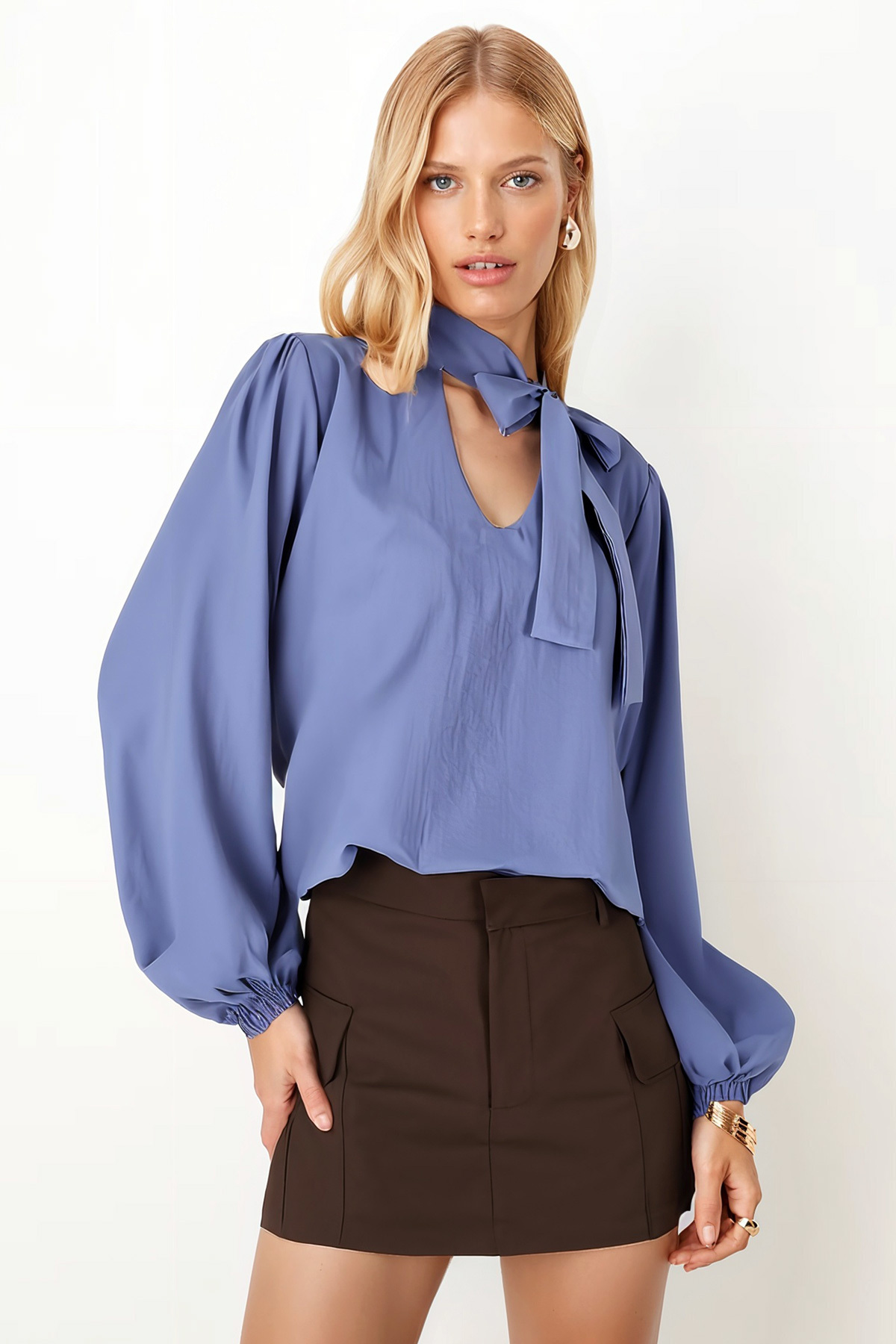 Kadın Açık Pembe Yakalı Kruvaze Bluz ARM-22Y024025 Kadın Açık Pembe Yakalı Kruvaze Bluz ARM-22Y024025 XL