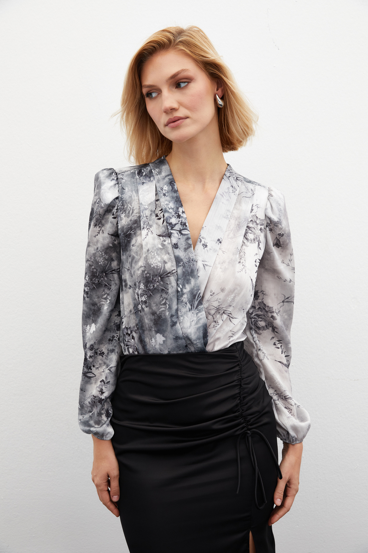 Çiçek Desenli Bodysuit Bluz - GRİ Çiçek Desenli Bodysuit Bluz - GRİ STN139KBL1462 42