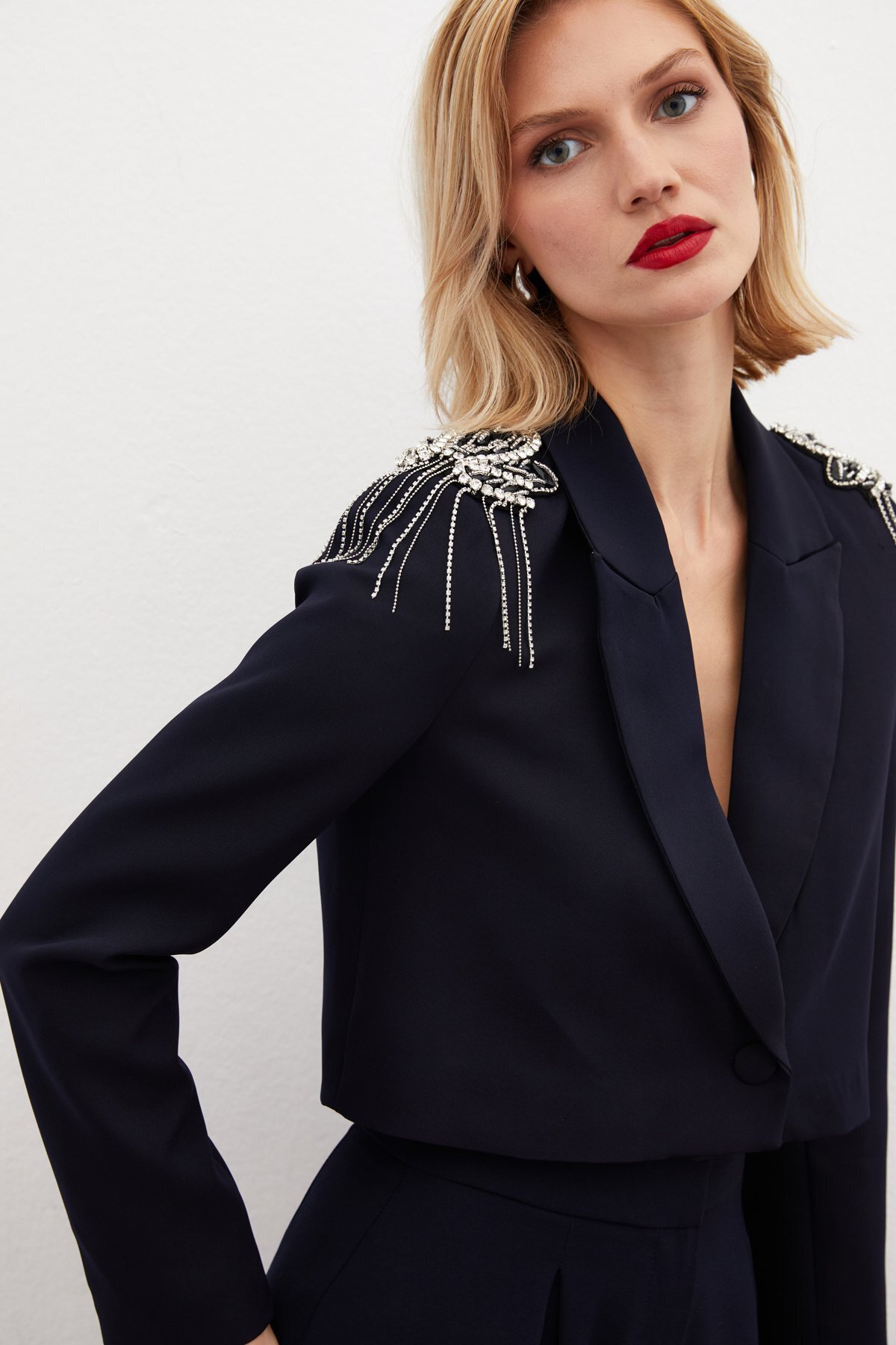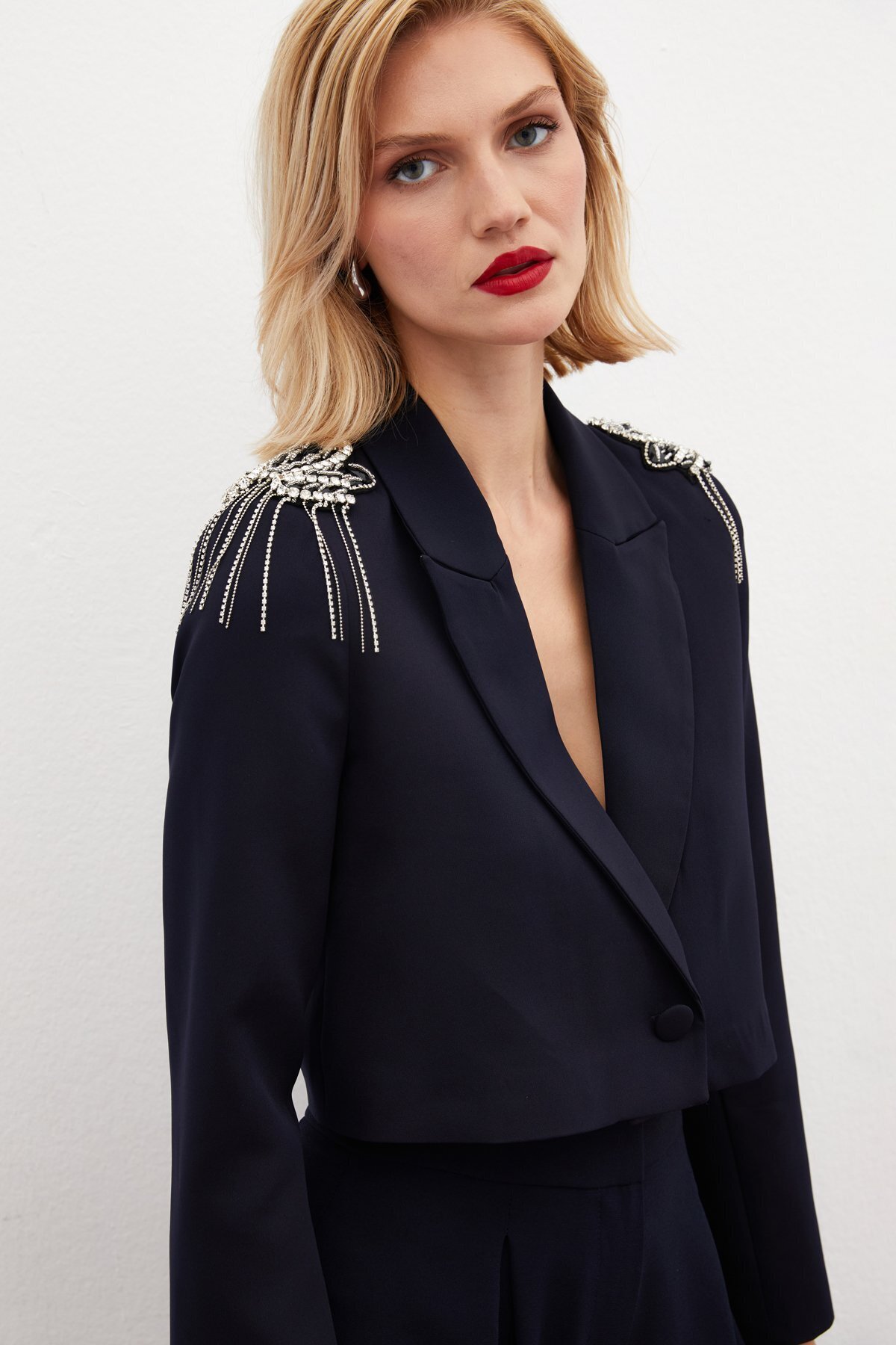 Omuz Aksesuarlı Kısa Ceket - LACİVERT Omuz Aksesuarlı Kısa Ceket - LACİVERT STN139KCE3046 42