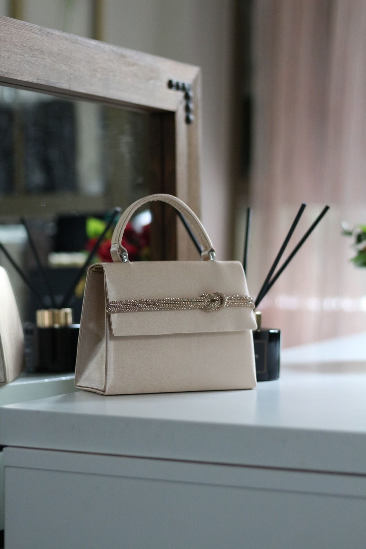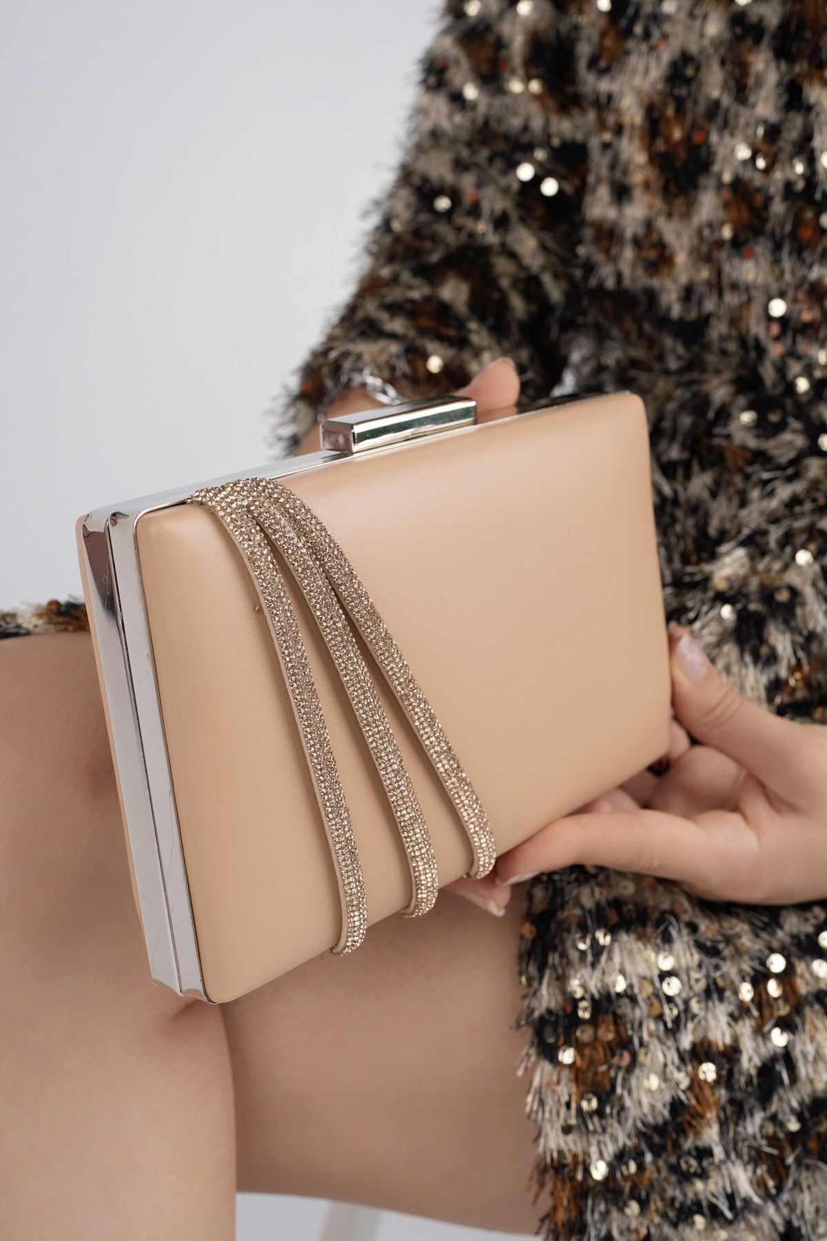 Kadın Nude Saten Tutma Taş Şerit Detaylı Abiye Omuz Çantası Kadın Nude Saten Tutma Taş Şerit Detaylı Abiye Omuz Çantası MB000803 تک سایز
