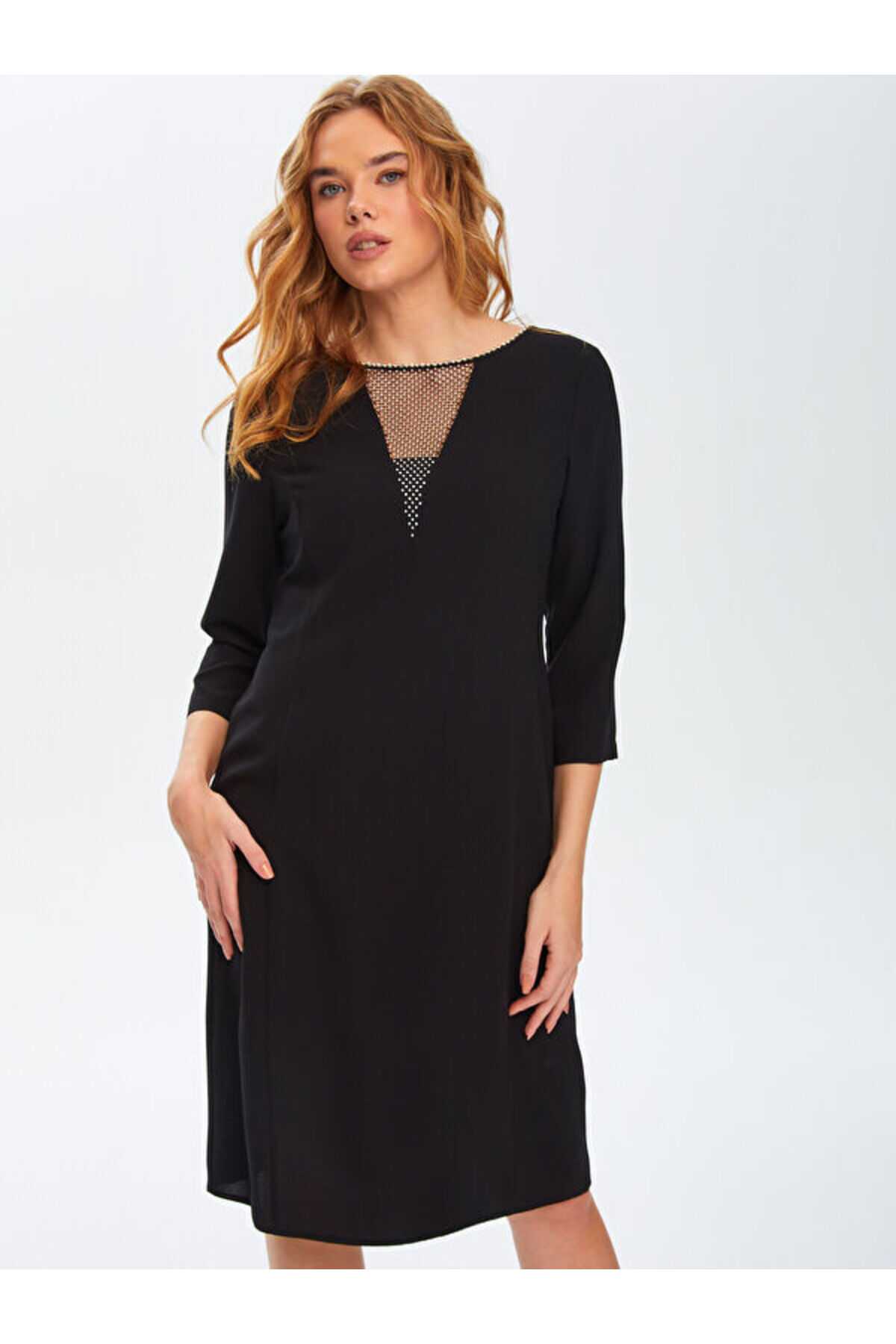 Yakası Taş İlemeli 3/4 Kol Abiye Elbise 69101 Yakası Taş İlemeli 3/4 Kol Abiye Elbise 69101 U69101 54