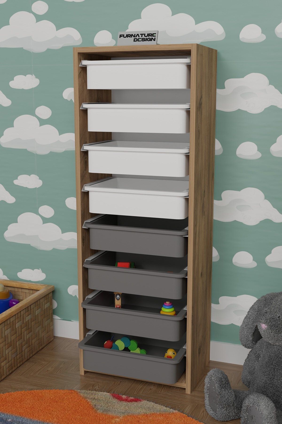 8 Sepetli Çok Amaçlı Dolap Oyuncak Dolabı - Atlantik Çam - Gri 8 Sepetli Çok Amaçlı Dolap Oyuncak Dolabı - Atlantik Çam - Gri FD-8SPTOYNCK تک سایز