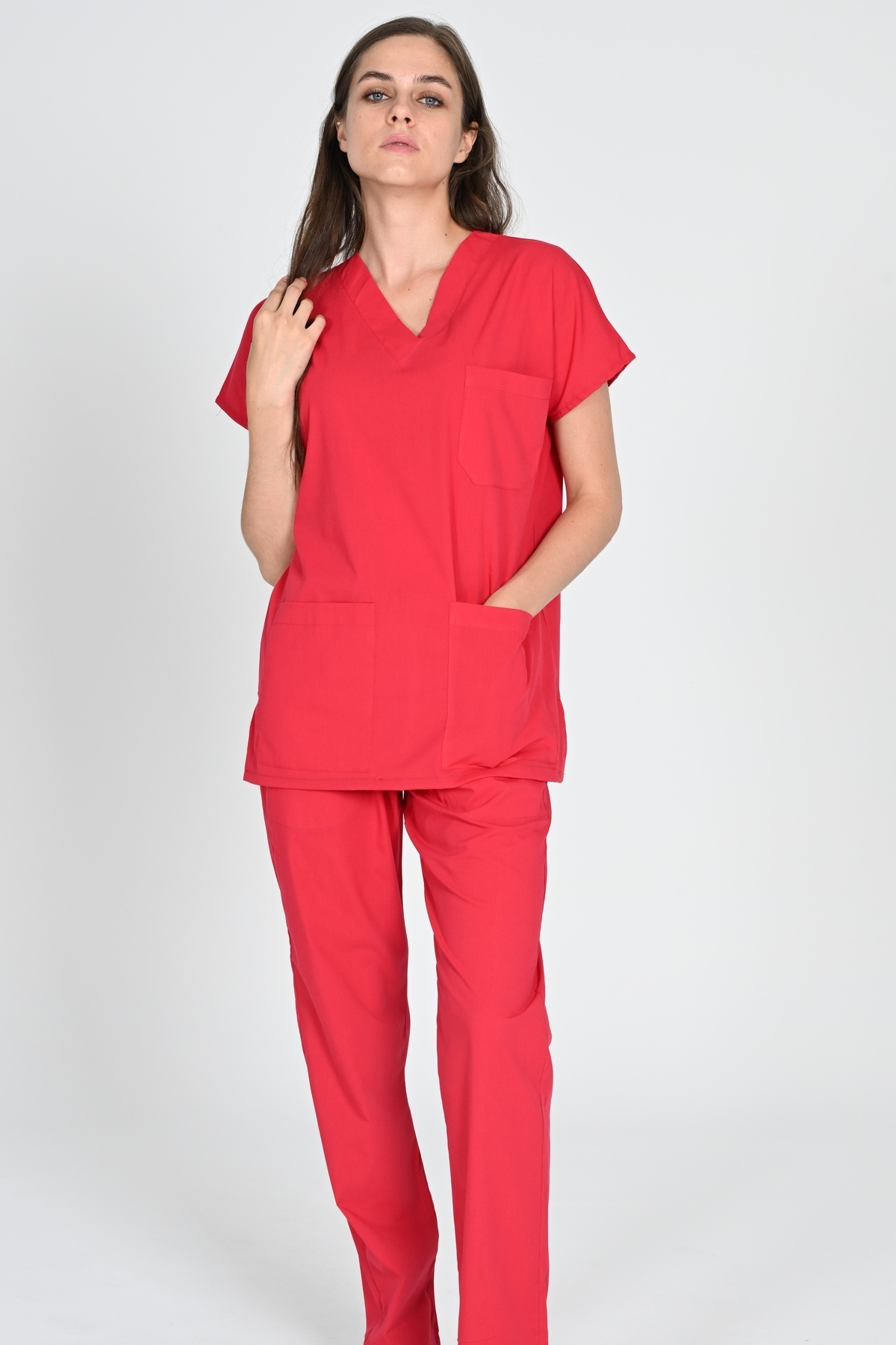 Mercan Pamuk Likralı Unisex Yarasa Kol Hemşire Forması Ve Doktor Forması Takımı Hastane Üniforması Mercan Pamuk Likralı Unisex Yarasa Kol Hemşire Forması Ve Doktor Forması Takımı Hastane Üniforması HM-ATY8803 3XL
