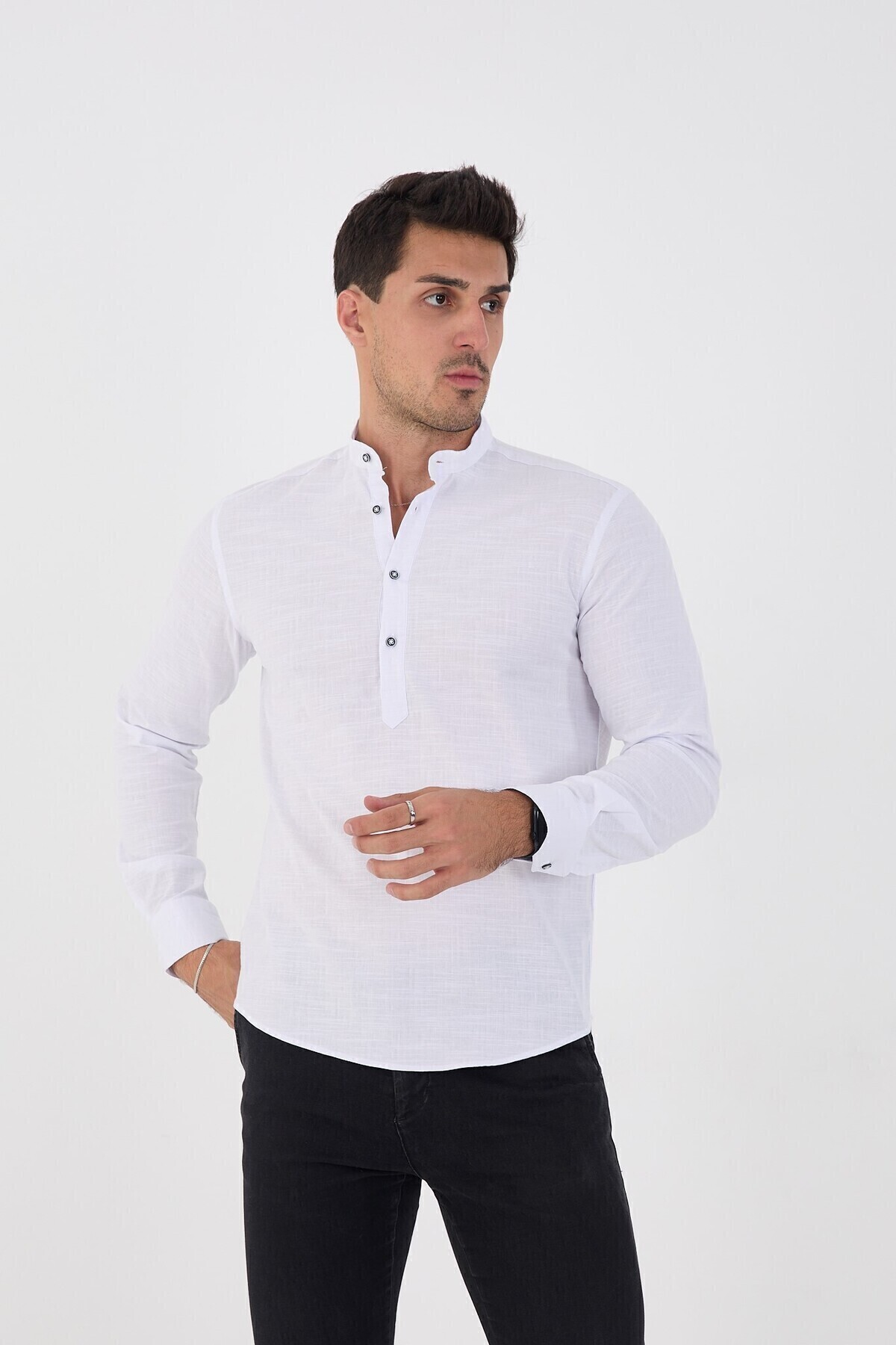 Slim Fit Uzun Kol Hakim Yaka Yarım Patlı Hediye Kutulu Erkek Gömlek FS-003687 - Beyaz Slim Fit Uzun Kol Hakim Yaka Yarım Patlı Hediye Kutulu Erkek Gömlek FS-003687 - Beyaz 3XL