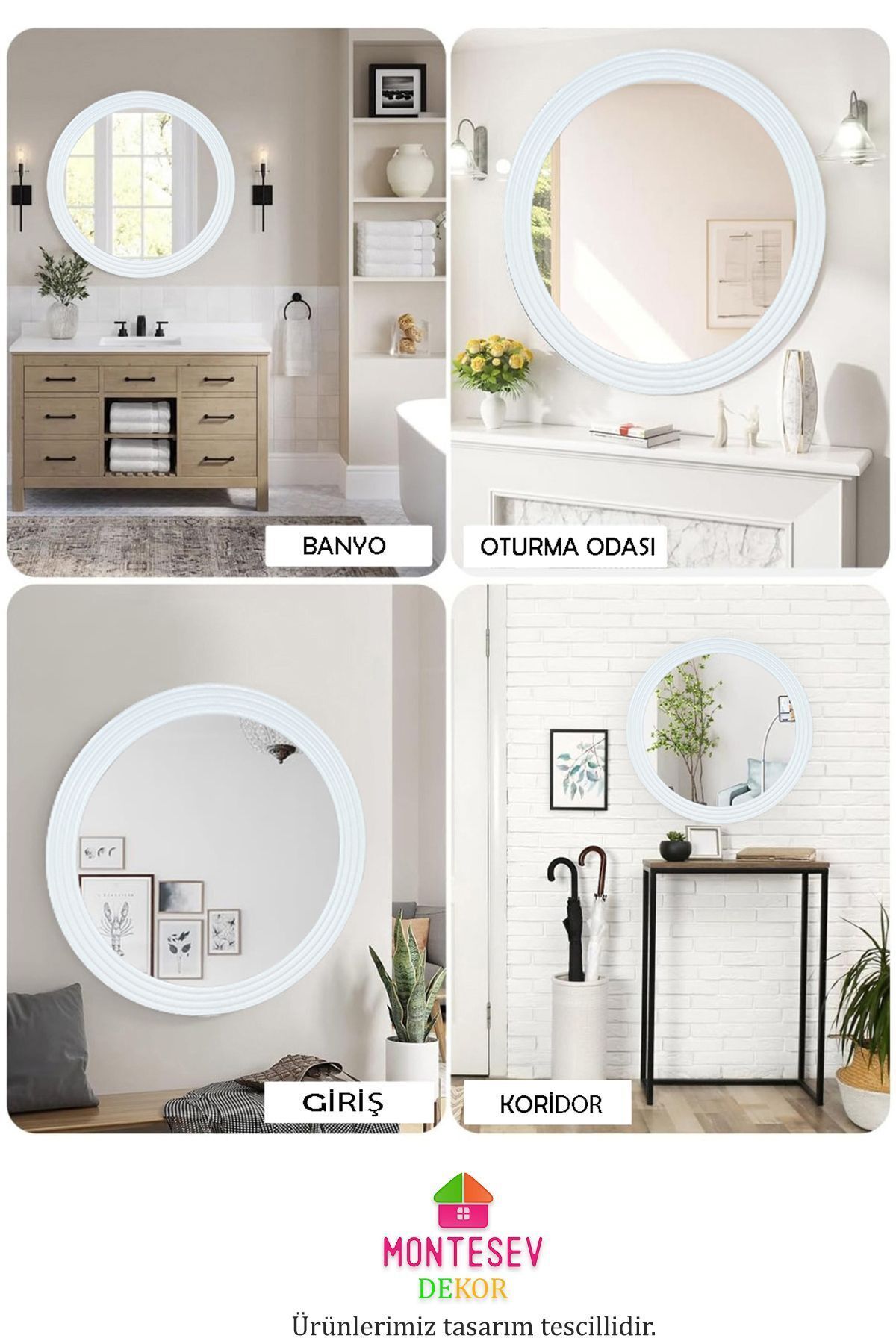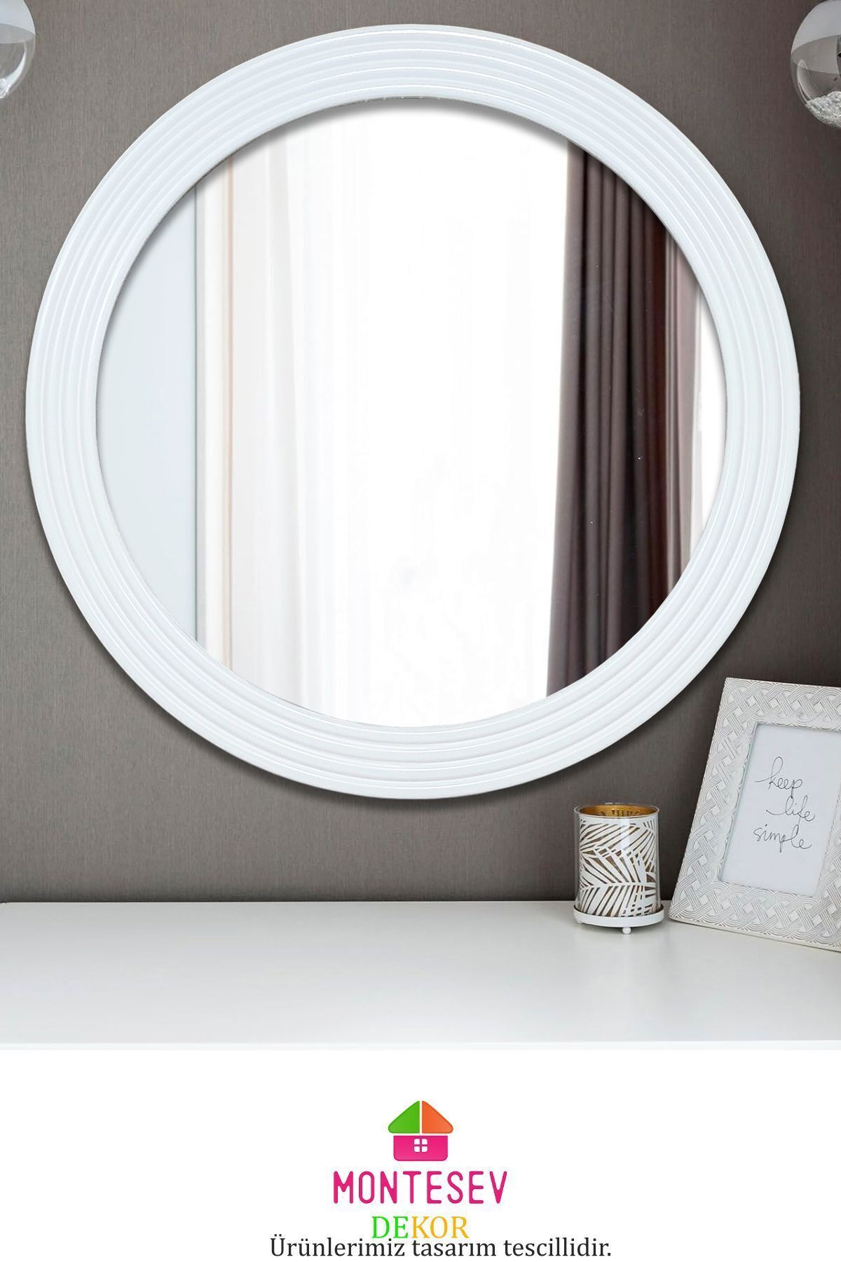Zümrüt Beyaz Dekoratif Ayna Yuvarlak Ayna Işlemeli Ahşap Duvar Aynası Tekli - 43 Cm Zümrüt Beyaz Dekoratif Ayna Yuvarlak Ayna Işlemeli Ahşap Duvar Aynası Tekli - 43 Cm AYNMT08 30 x 43