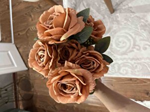 Yapay Çiçek 7li Gül Demeti 40*30cm 1.Kalite Büyükboy SOMON TURUNCU Yapay Çiçek 7li Gül Demeti 40*30cm 1.Kalite Büyükboy SOMON TURUNCU 7g-pastel تک سایز