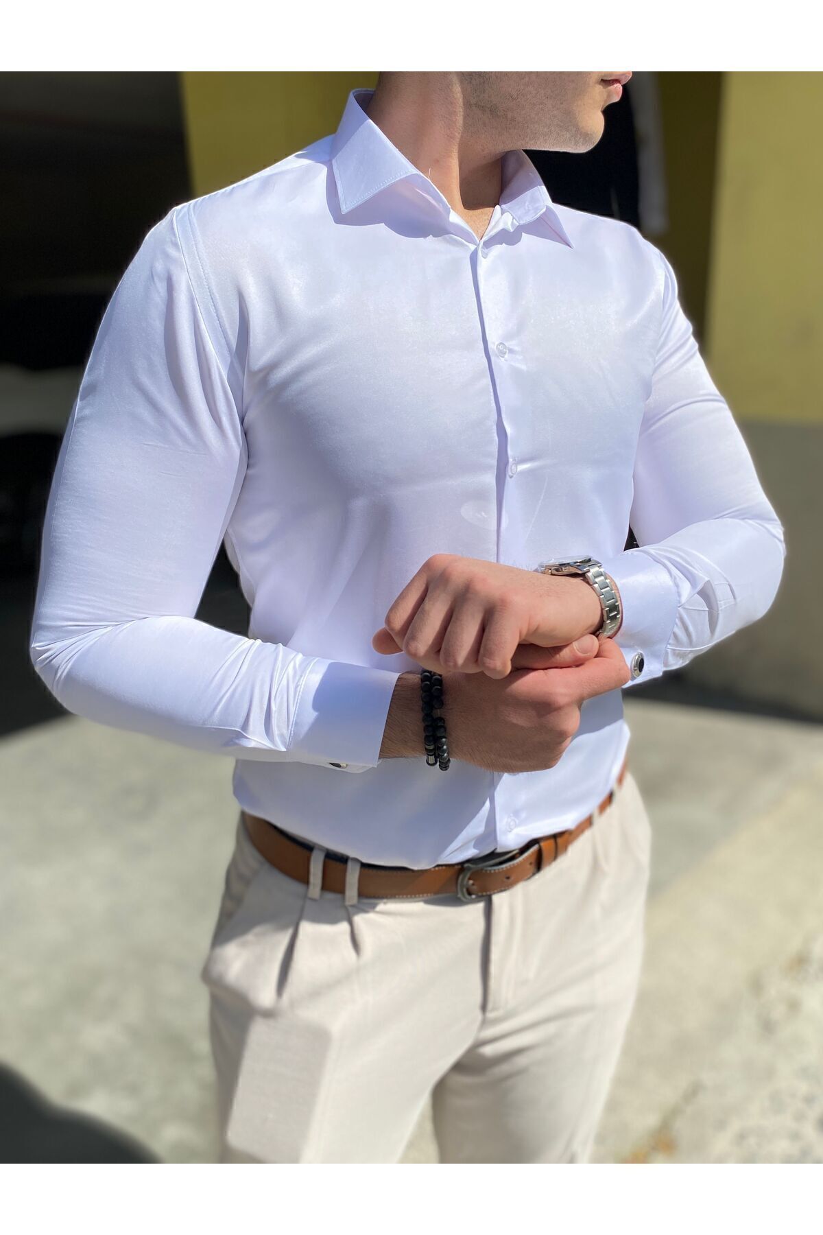 Slımfit Dar Kesim Cepsiz Uzun Kollu Parlak Beyaz Pamuk Saten Slımfit Dar Kesim Cepsiz Uzun Kollu Parlak Beyaz Pamuk Saten NİGSAT400 2XL