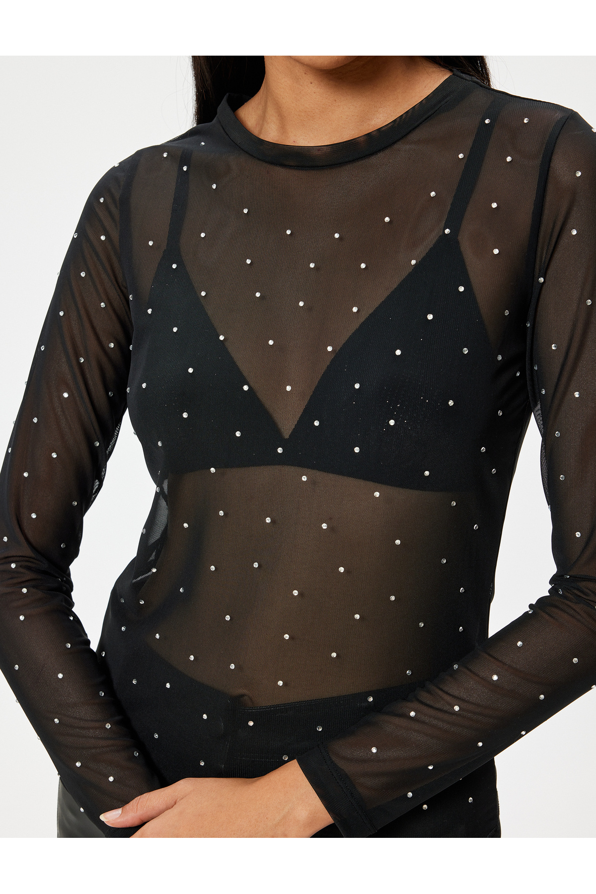 Transparan Taşlı Tişört Uzun Kollu Yuvarlak Yaka Slim Fit Transparan Taşlı Tişört Uzun Kollu Yuvarlak Yaka Slim Fit 5WAK50092EK XL