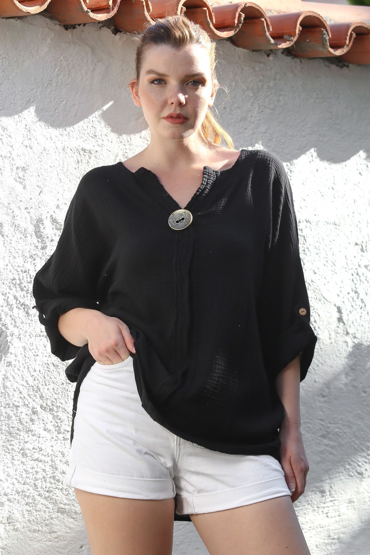Haki Patlı Yaka Uzun Kol Düğmeli Yıkamalı Dokuma Casual Müslin Bluz Haki Patlı Yaka Uzun Kol Düğmeli Yıkamalı Dokuma Casual Müslin Bluz M10010200BL92013 2XL