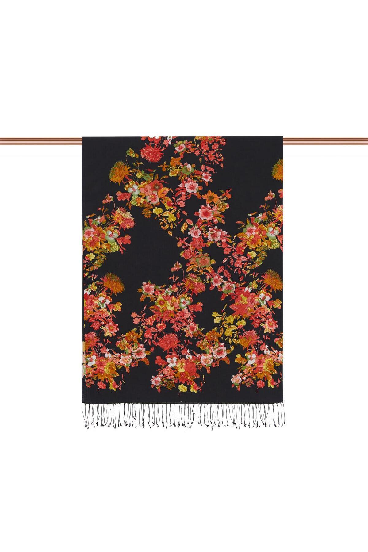 İpekevi Hercai Menekşe Desenli İpek Şal-Siyah İpekevi Hercai Menekşe Desenli İpek Şal-Siyah 6136 70 x 200