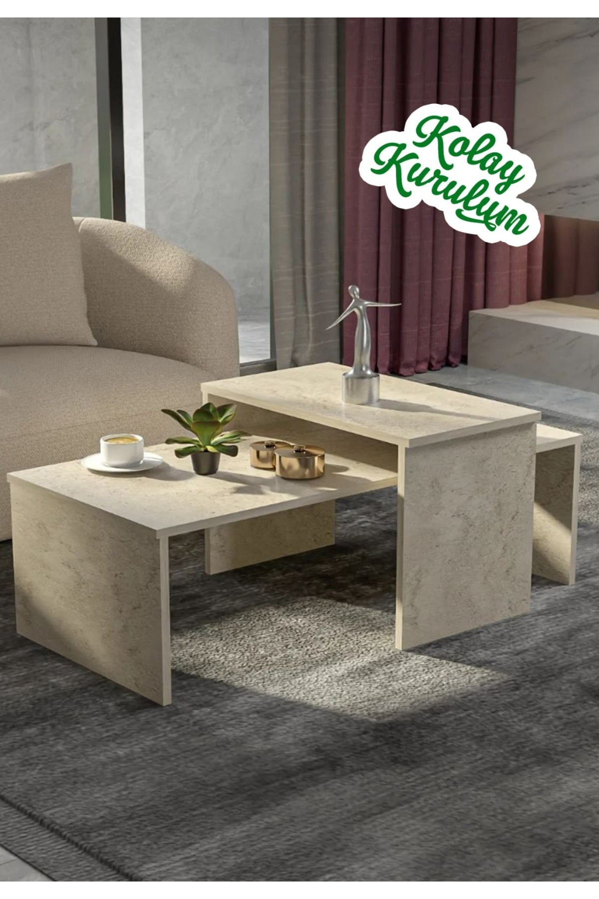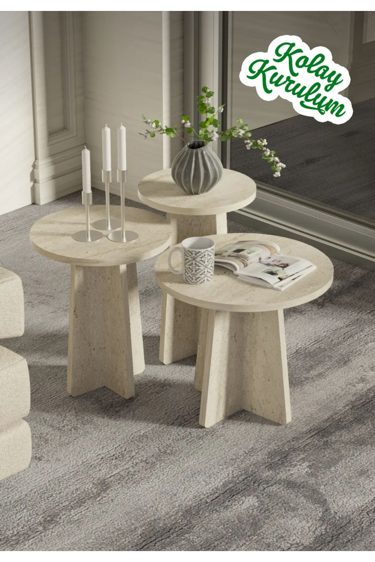 2 Li Orta Sehpa Seti, Iskandinav Stil, Bohem, 72 Cm, 40 Cm - Traverten 2 Li Orta Sehpa Seti, Iskandinav Stil, Bohem, 72 Cm, 40 Cm - Traverten ONAUORTA2 تک سایز