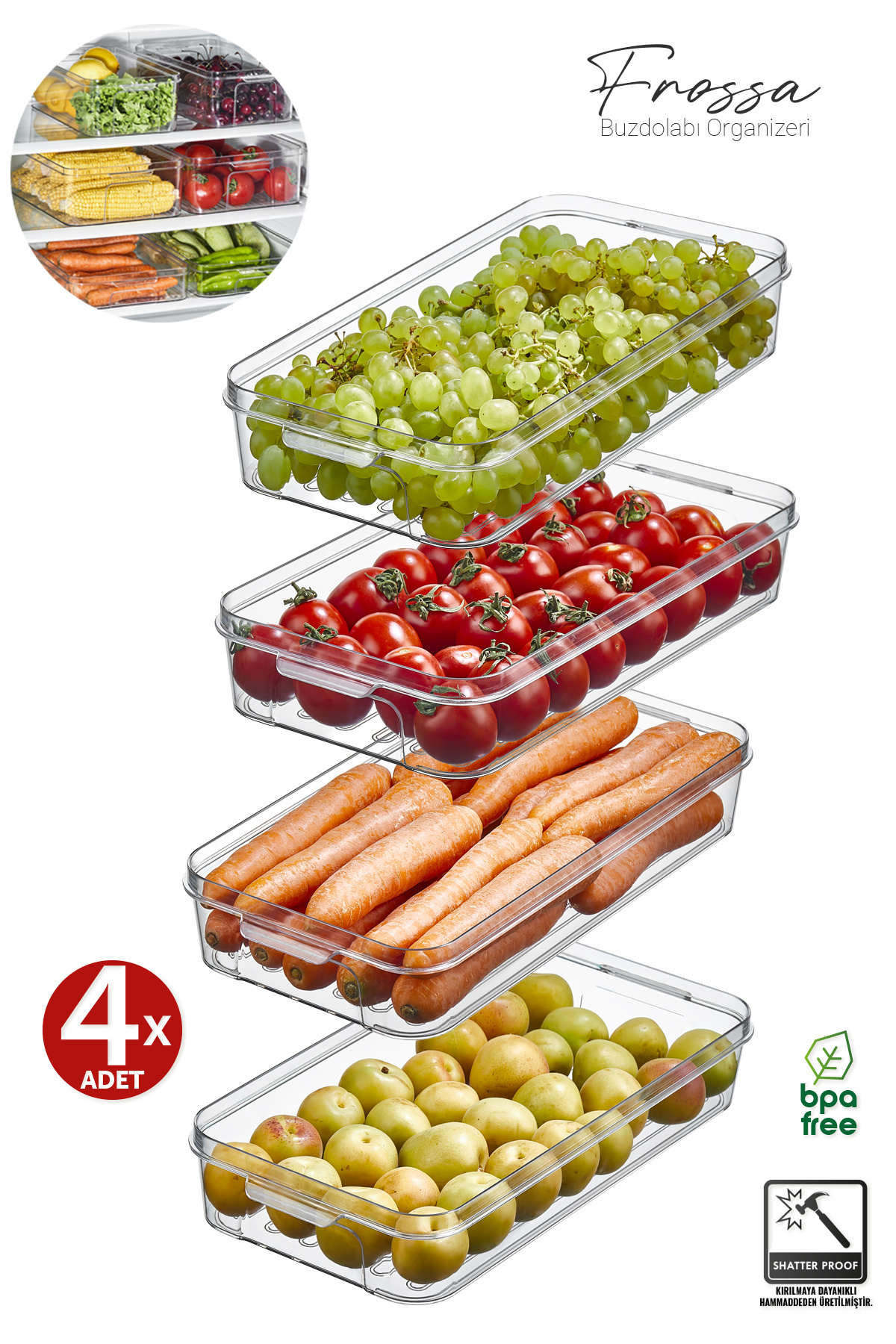 4x Adet Frossa Buzdolabı Organizeri 3LT Saklama Kabı & Erzak Kabı & Düzenleyici 4x Adet Frossa Buzdolabı Organizeri 3LT Saklama Kabı & Erzak Kabı & Düzenleyici EM-3314S تک سایز