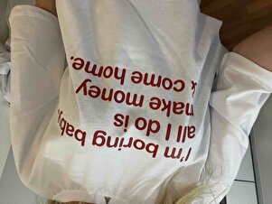 Unisex I'm Boring Baby Baskılı %100 Pamuk Oversize Beyaz Yazılı T-shirt Unisex I'm Boring Baby Baskılı %100 Pamuk Oversize Beyaz Yazılı T-shirt boringbaby-aemi 2XL