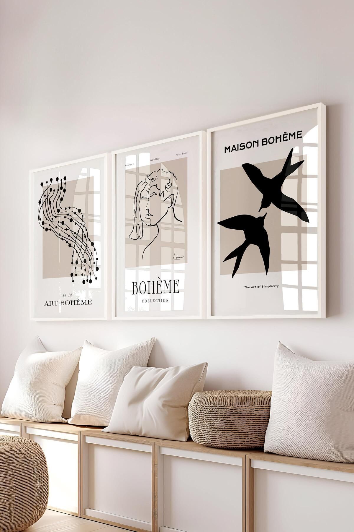 Minimalist Tablo Seti, 3 Adet Siyah Çerçeve ve Poster - Yatak Odası, Salon, Mutfak Duvar Dekoru Minimalist Tablo Seti, 3 Adet Siyah Çerçeve ve Poster - Yatak Odası, Salon, Mutfak Duvar Dekoru Ç_300438 70 x 100