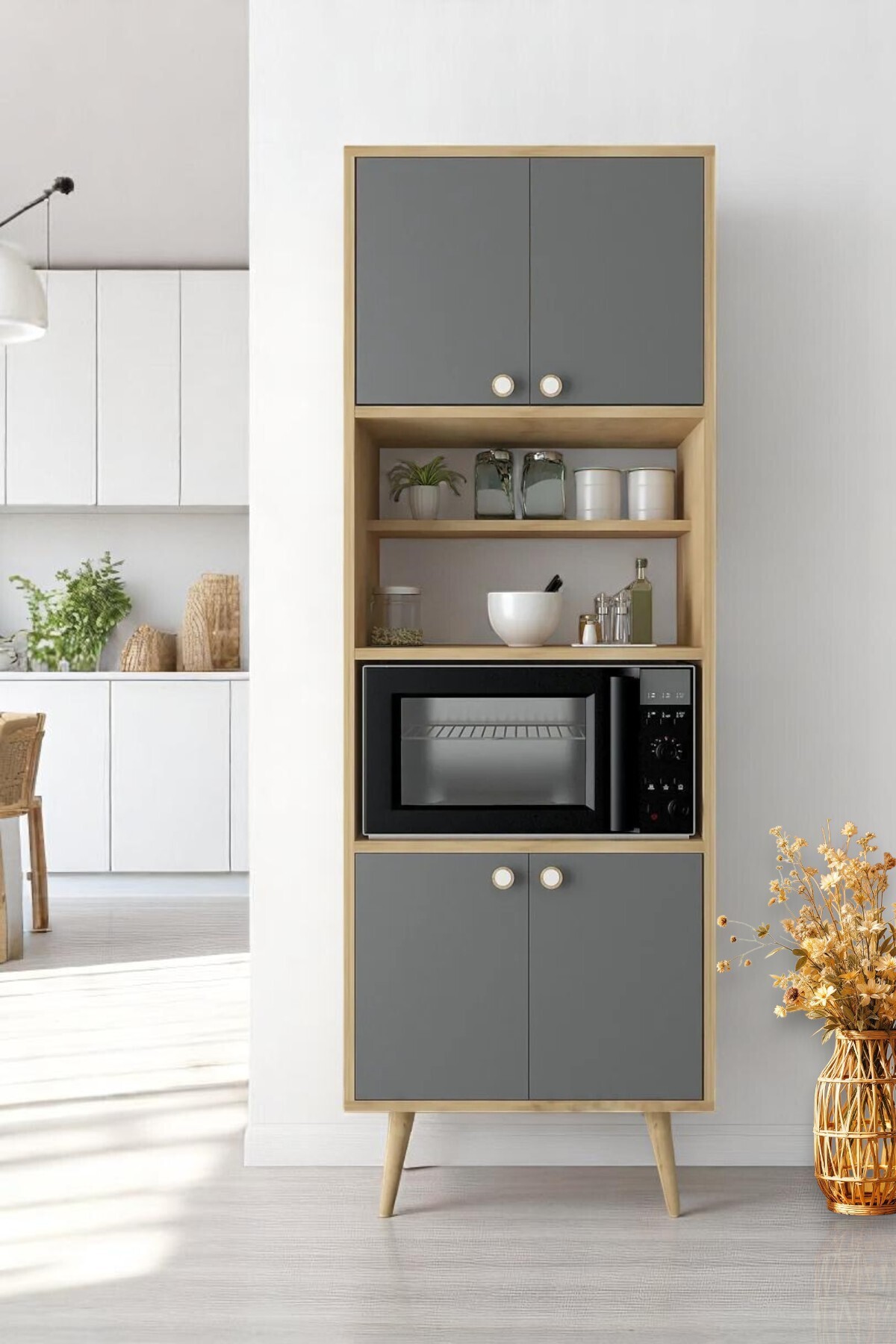 Lavin Çok Amaçlı Mutfak -banyo-kiler Ve Fırın Dolabı / 4 Kapaklı Dolap / Mikrodalga Fırın Dolabı Lavin Çok Amaçlı Mutfak -banyo-kiler Ve Fırın Dolabı / 4 Kapaklı Dolap / Mikrodalga Fırın Dolabı FLVN05 تک سایز