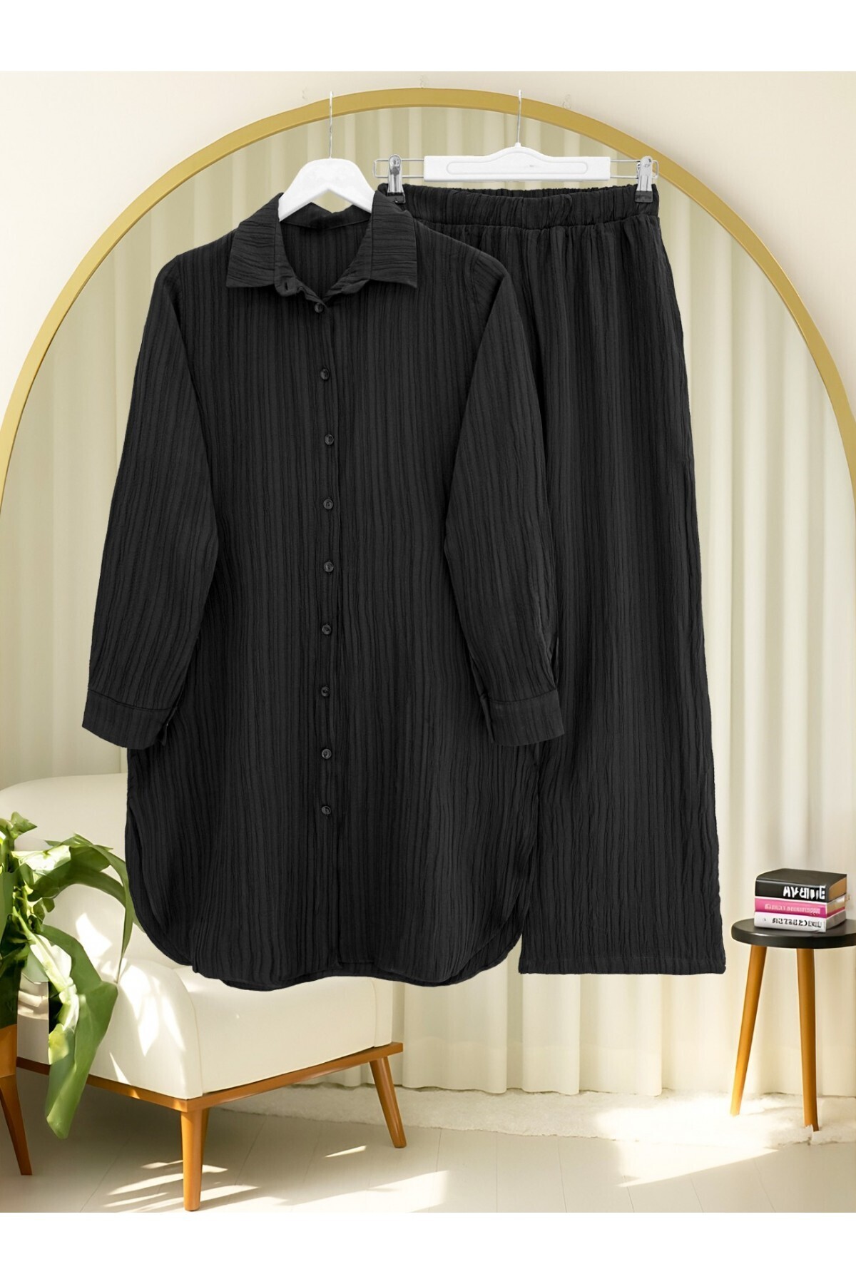 Robadan Büzgülü Dantel Işlemeli Keten Takım -karamel Robadan Büzgülü Dantel Işlemeli Keten Takım -karamel TY307-2040 42